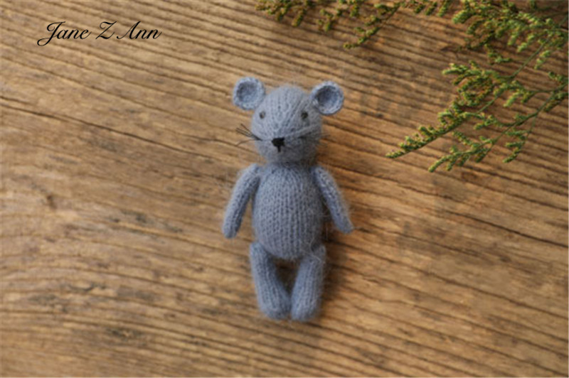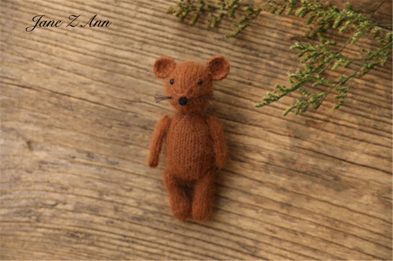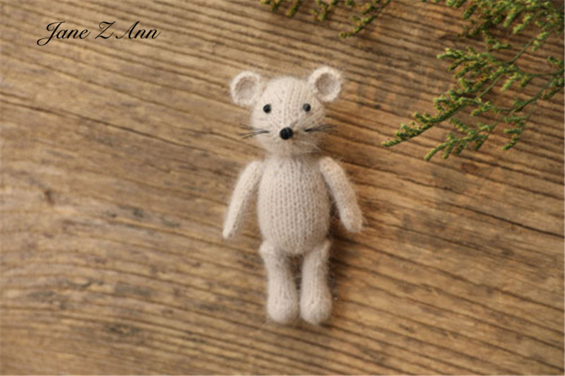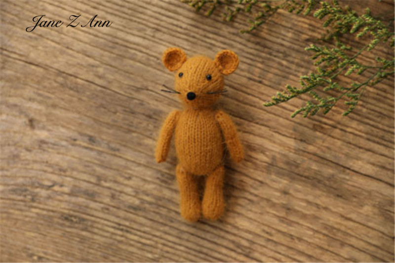 Handmade mink plush dolls knitted calf rabbit bear mouse newborn full moon photography props