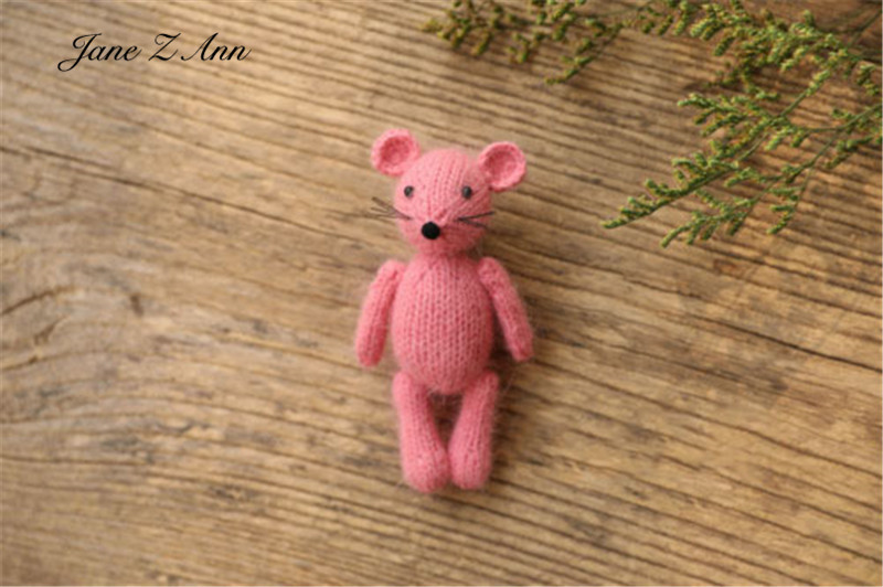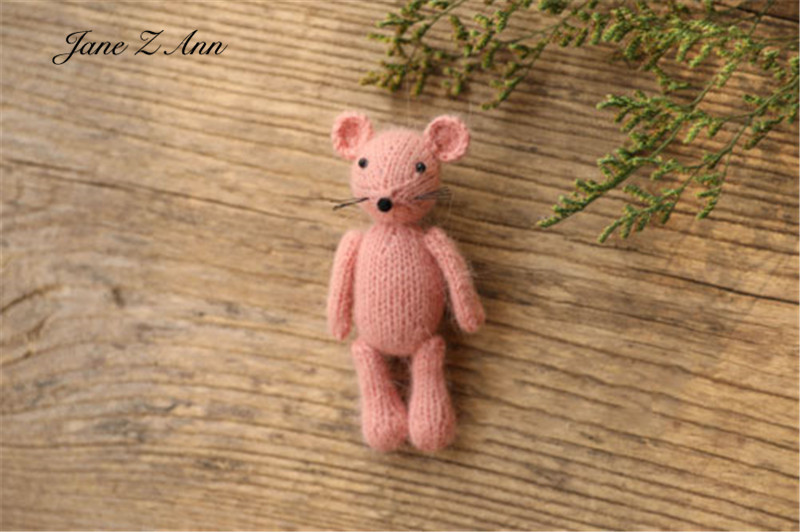 Color: Pink, Size: ONE SIZE - Handmade mink plush dolls knitted calf rabbit bear mouse newborn full moon photography props