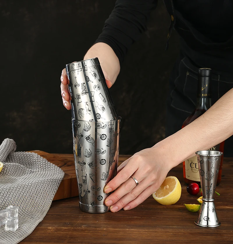 - Features: Type: Boston Cocktail Shaker Set Material: Stainless SteelÂ