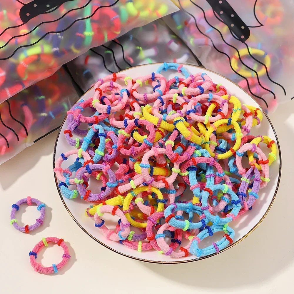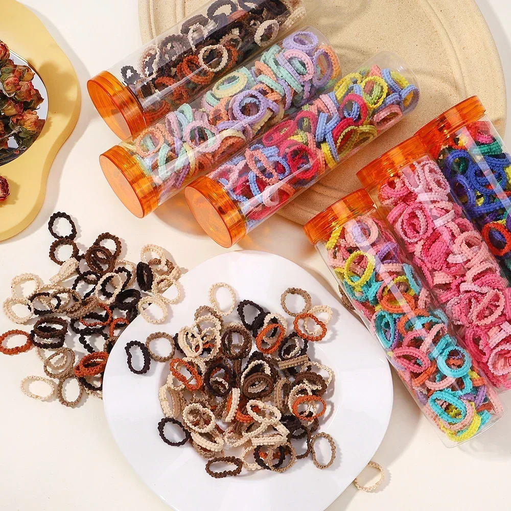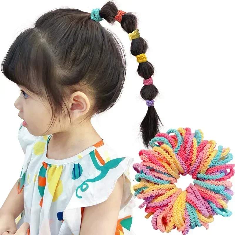Color: PURPLE - 40/60pcs Kids Small Rubber Bands Girls Hair Ties Headbands Non Damaging Tie Ponytail High Elastic Durable Colorful Hair Rope Set