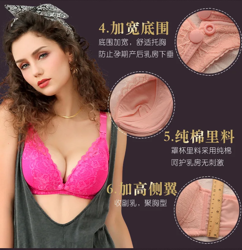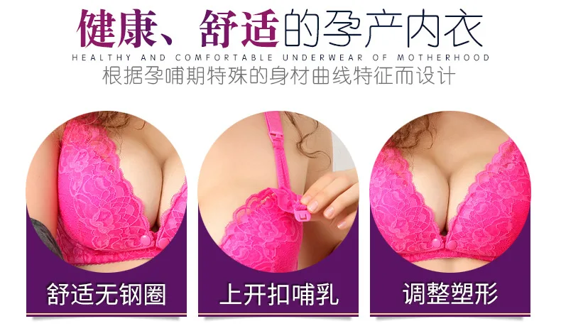Color: PURPLE, Bands Size: 38, Cup Size: C - Modern pregnant women's postpartum underwear breast feeding breathable lace front open button pregnant women's breast-feeding