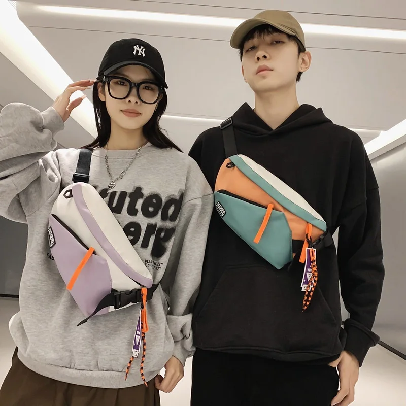 Color: PURPLE - Chest Rig Bag Women Fanny Pack Streetwear Chest Bags Multi-function Unisex Nylon Hip hop Waist Bag Phone pocket
