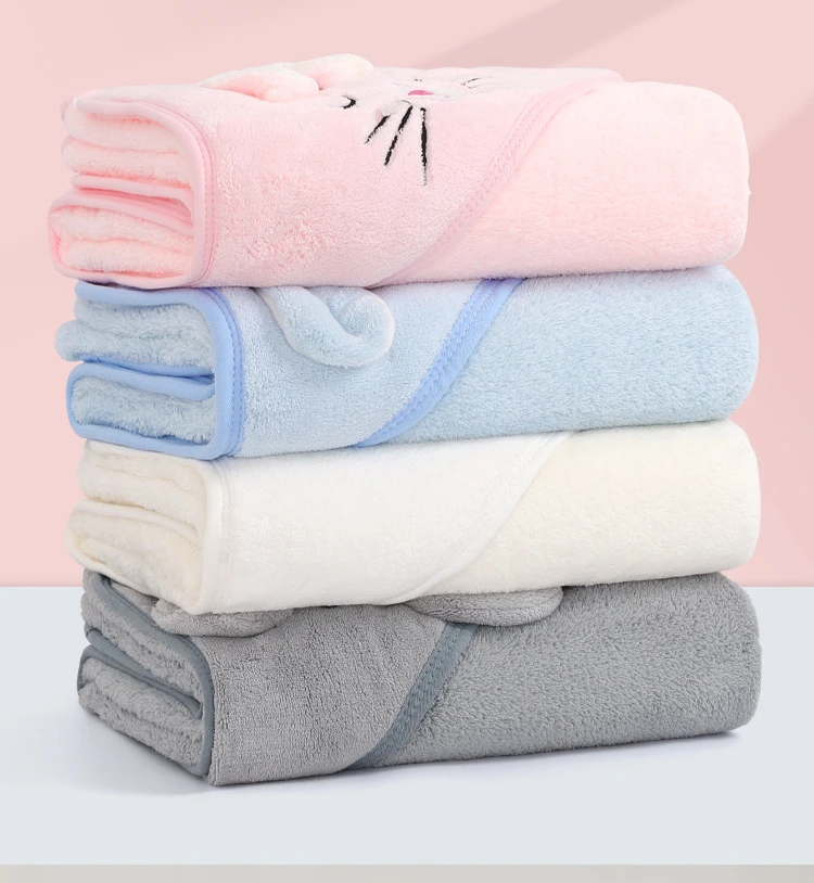 Color: PURPLE - Newborn Baby Bath Towel Cartoon Baby Swaddle Kids Bathrobe Fleece Blanket Warm Sleeping Swaddle Wrap for New Born Boys Girls