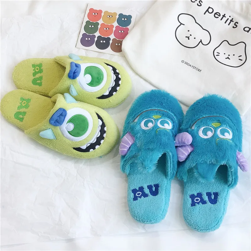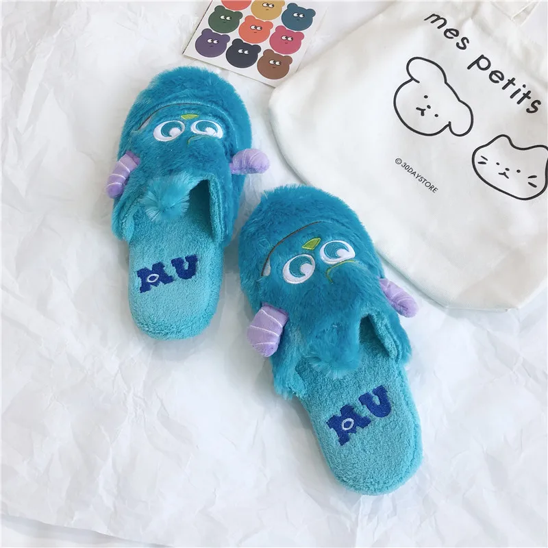 Color: PURPLE, Shoe Size: 38 - Cartoon Sulley Mike Slippers Cute Girl Warm Home Slippers Women Indoor Slippers Blue Duck Kawaii Non-slip Slippers Gifts EU36-41