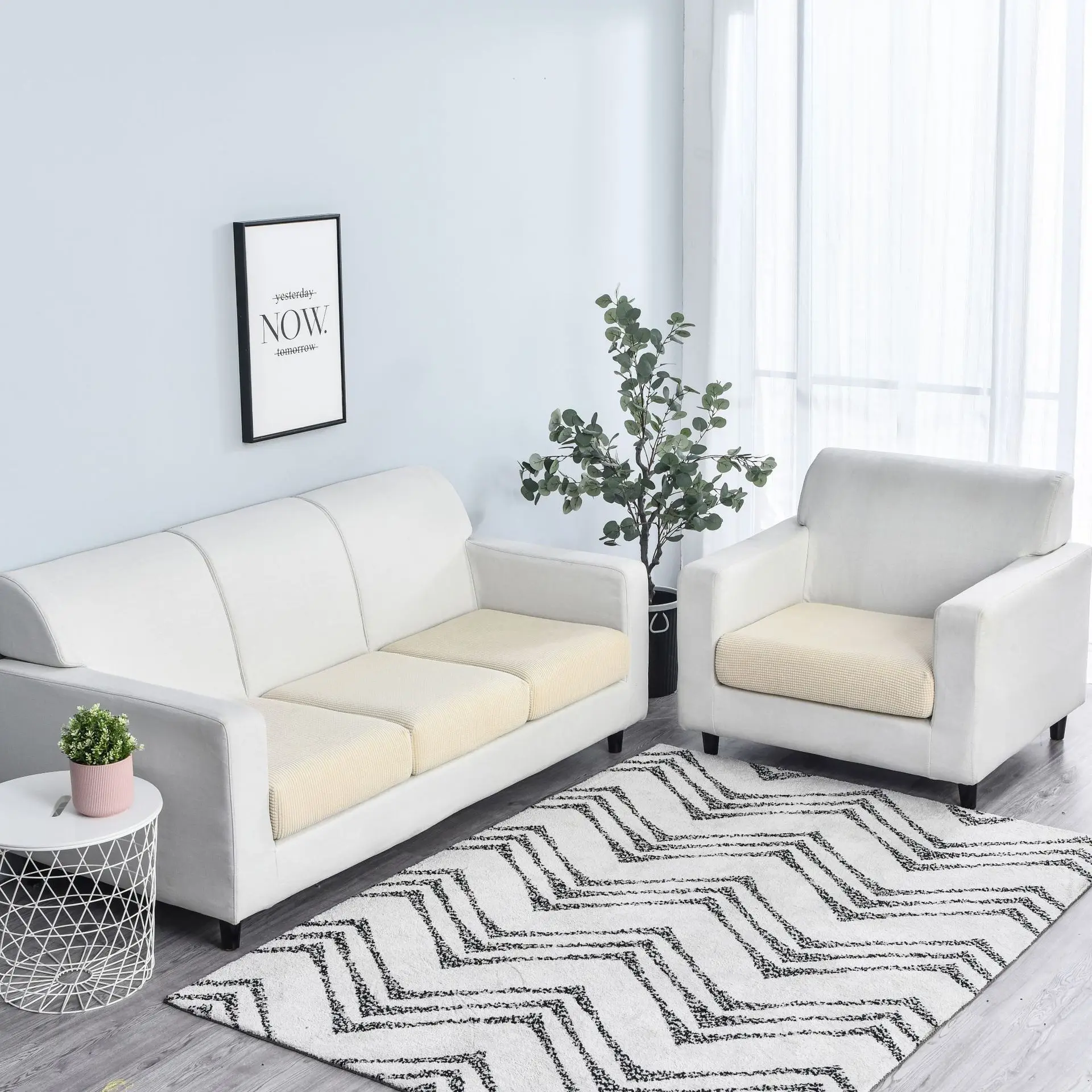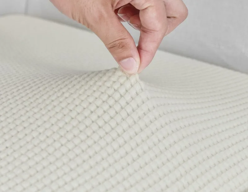 This sofa cover is made of stretchy and breathable jacquard fabric. It can perfectly cover the sofa cushions, has been dust and stain resistant, easy to change and wash.