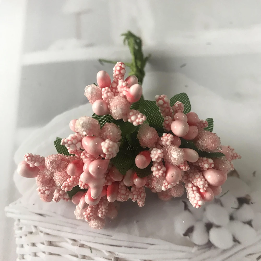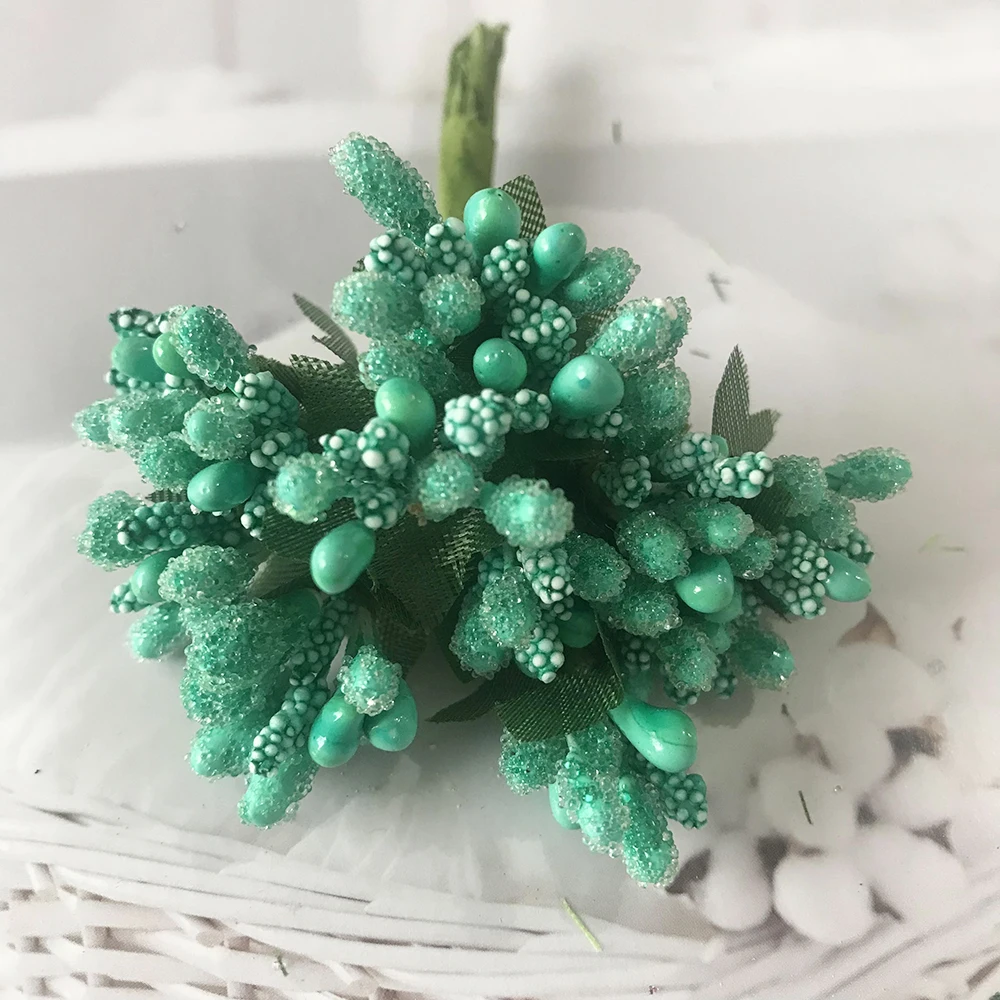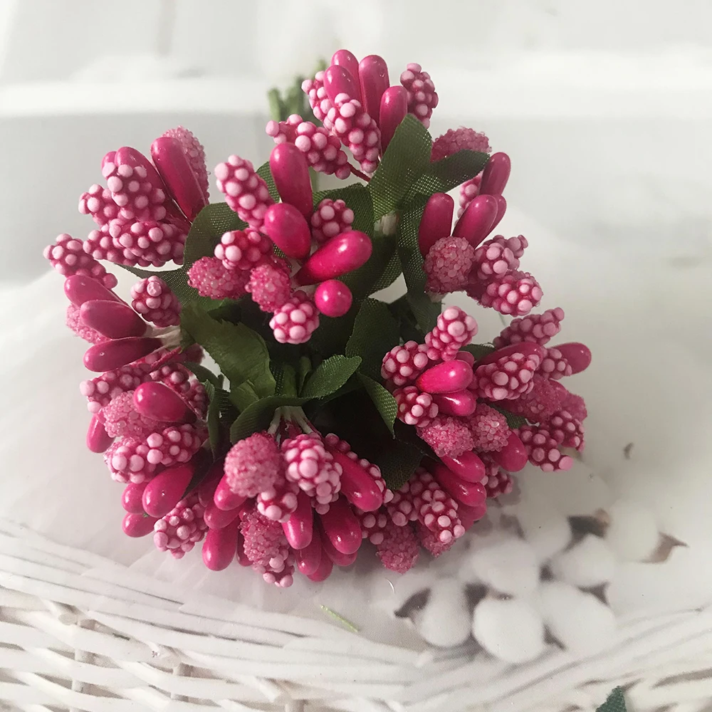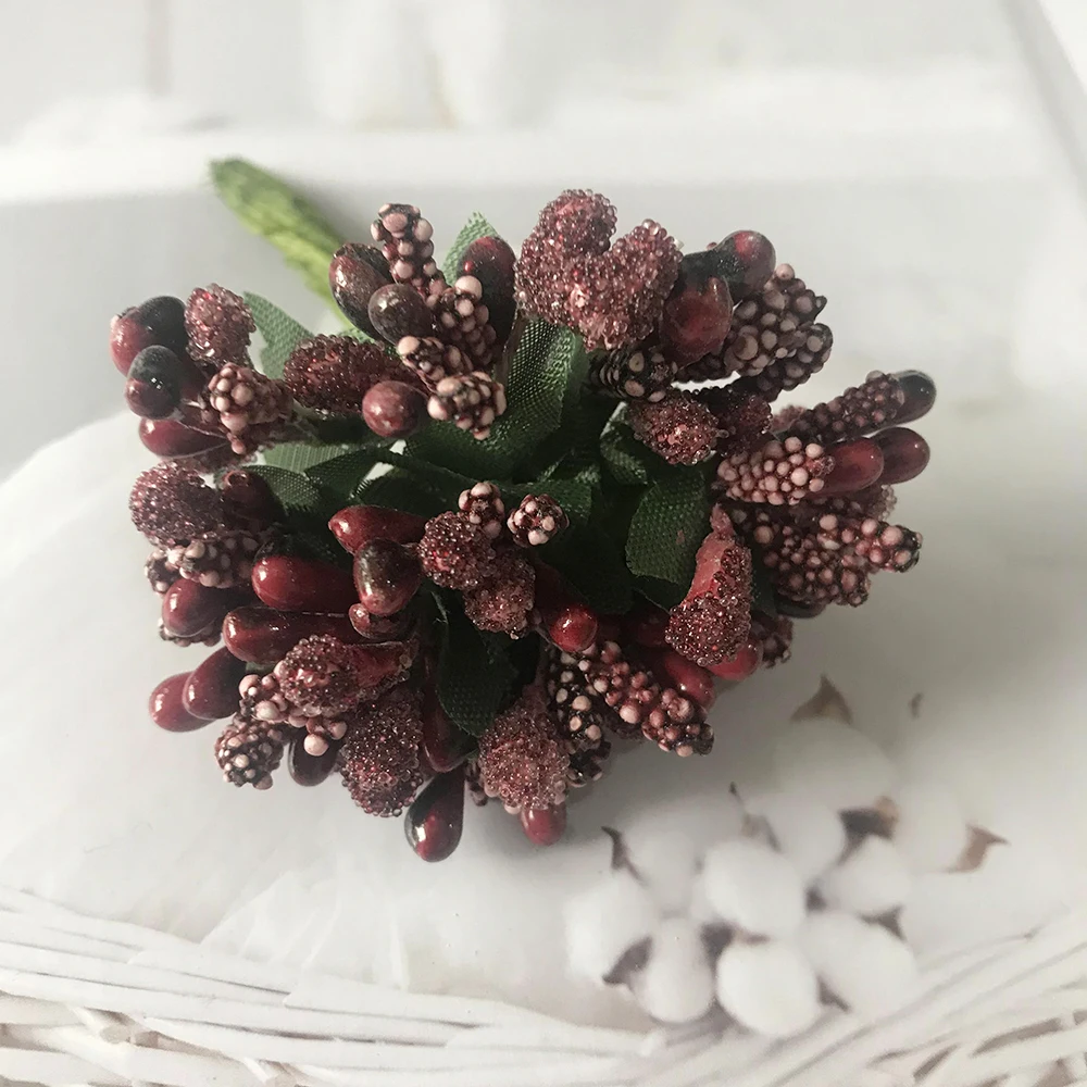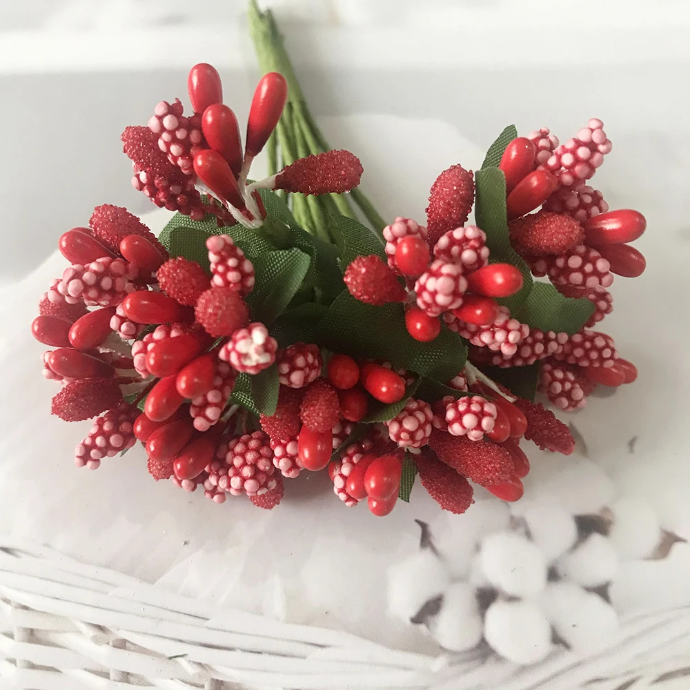 Color: Red - 12PCS/lot Artificial Flower Small Berries Stamen Wire Stem/marriage Leaves DIY Wreath Wedding Scrapbooking Box Decoration Craft