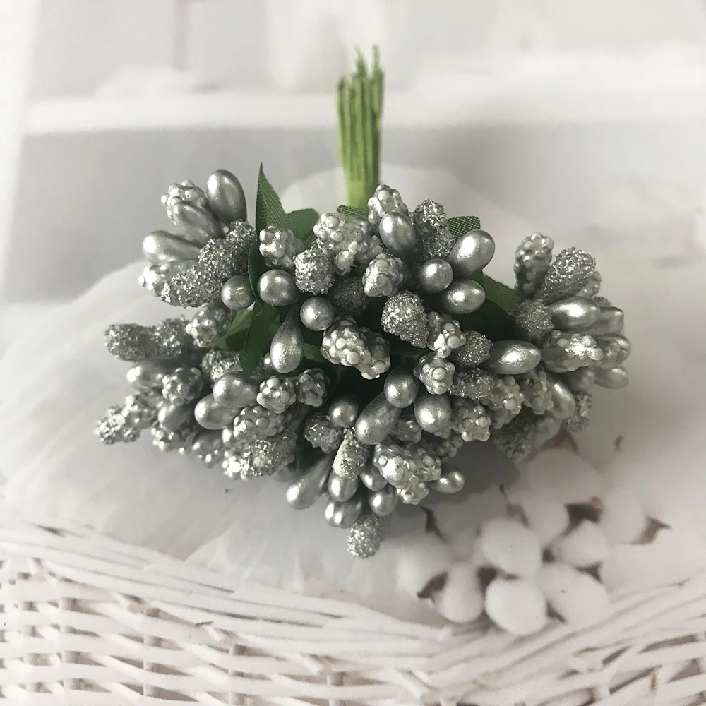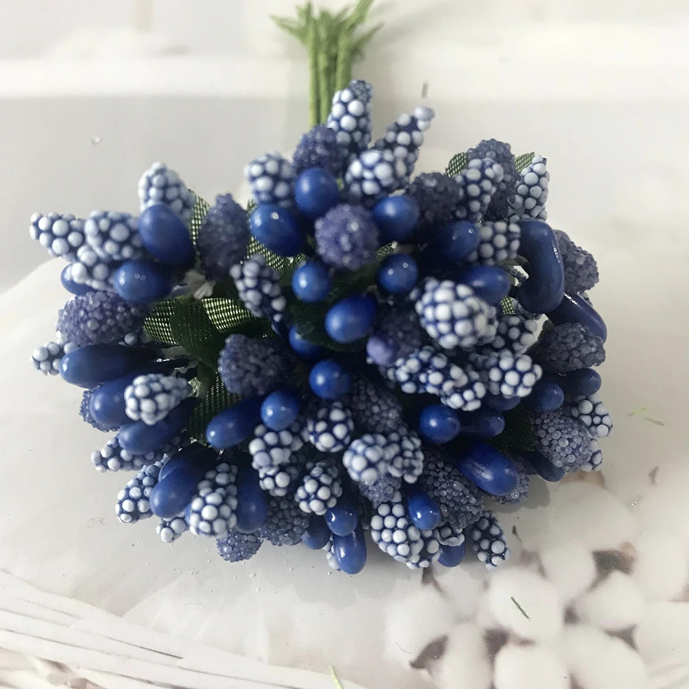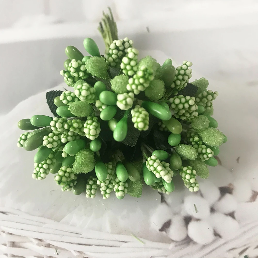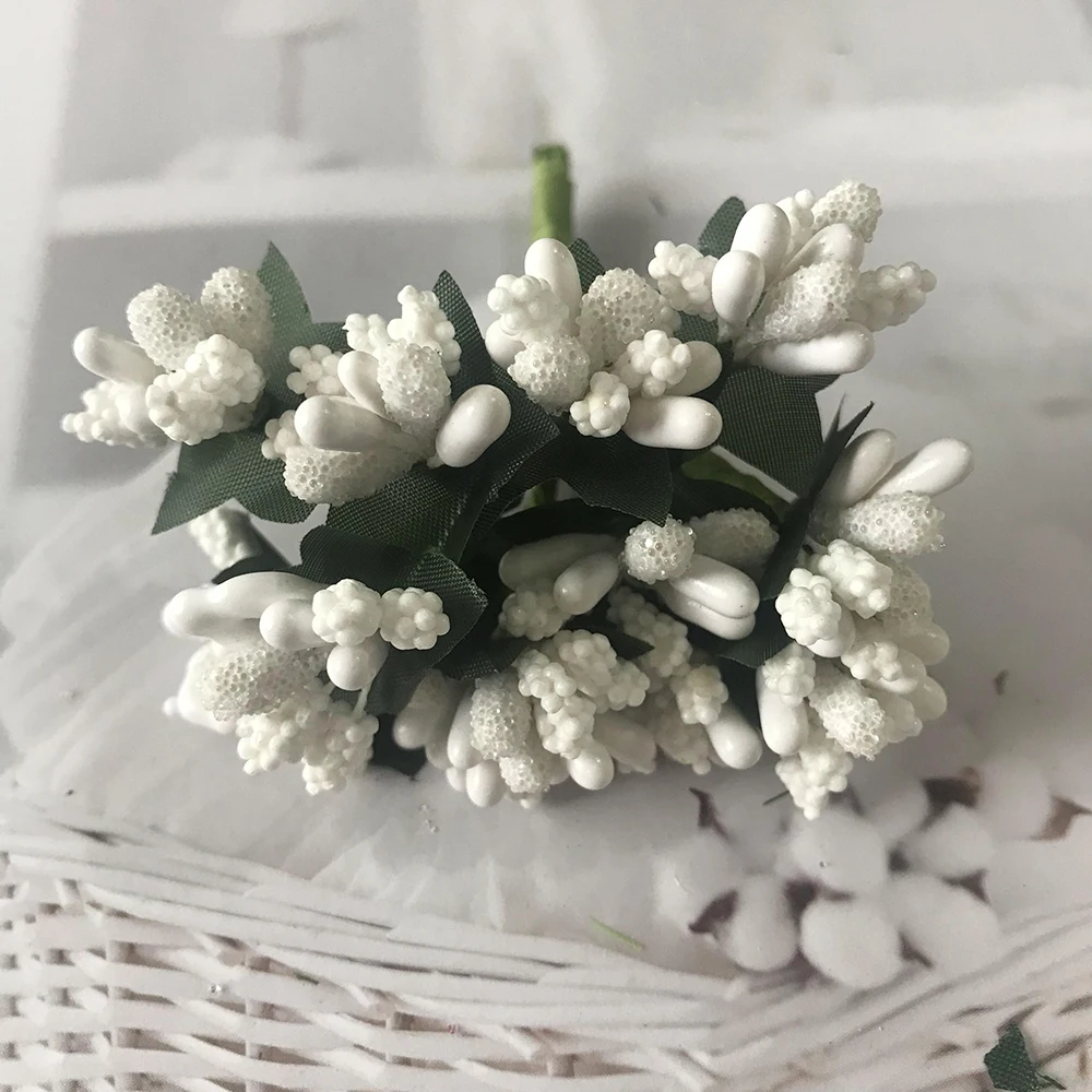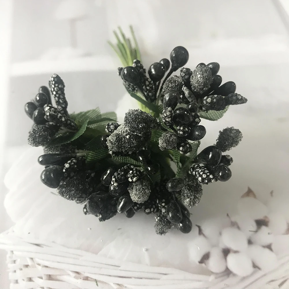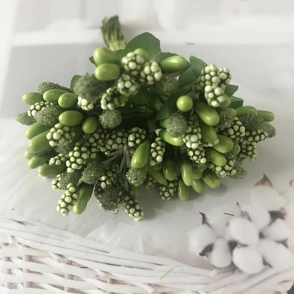 Color: Red - 12PCS/lot Artificial Flower Small Berries Stamen Wire Stem/marriage Leaves DIY Wreath Wedding Scrapbooking Box Decoration Craft