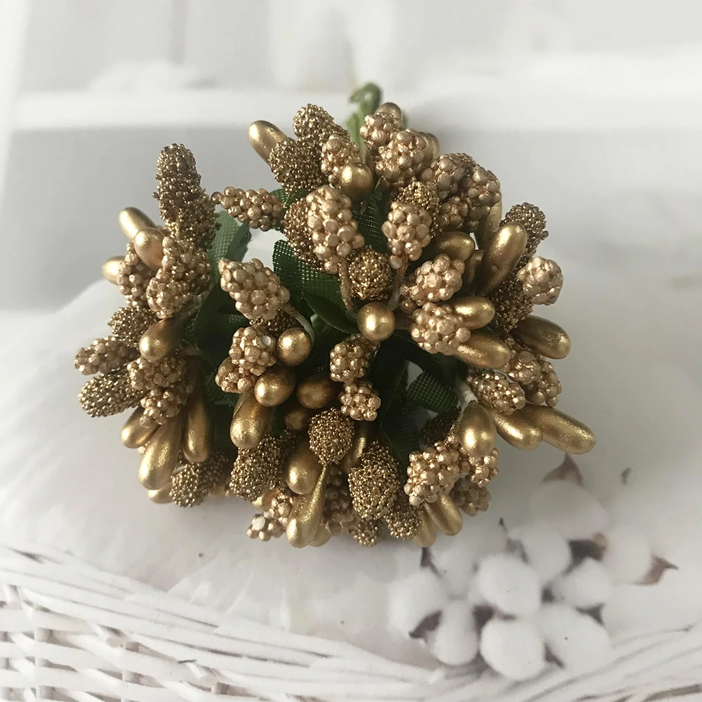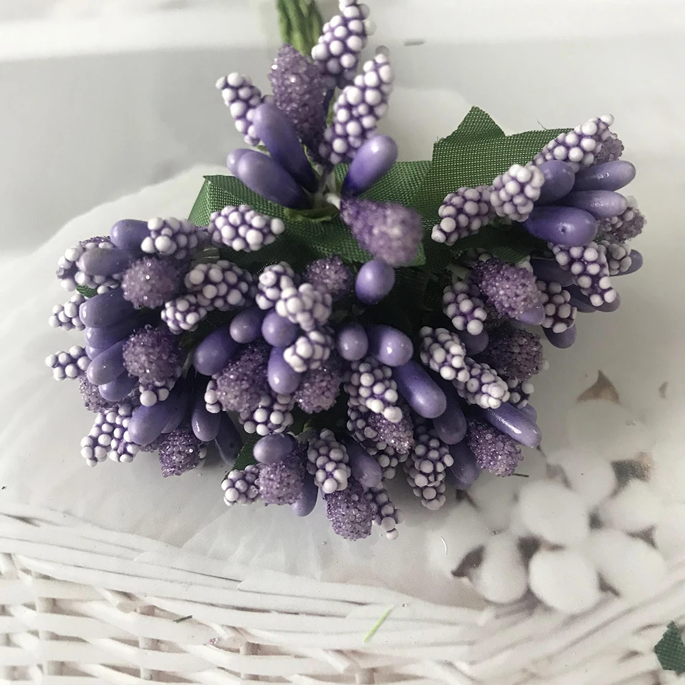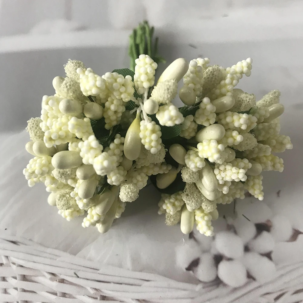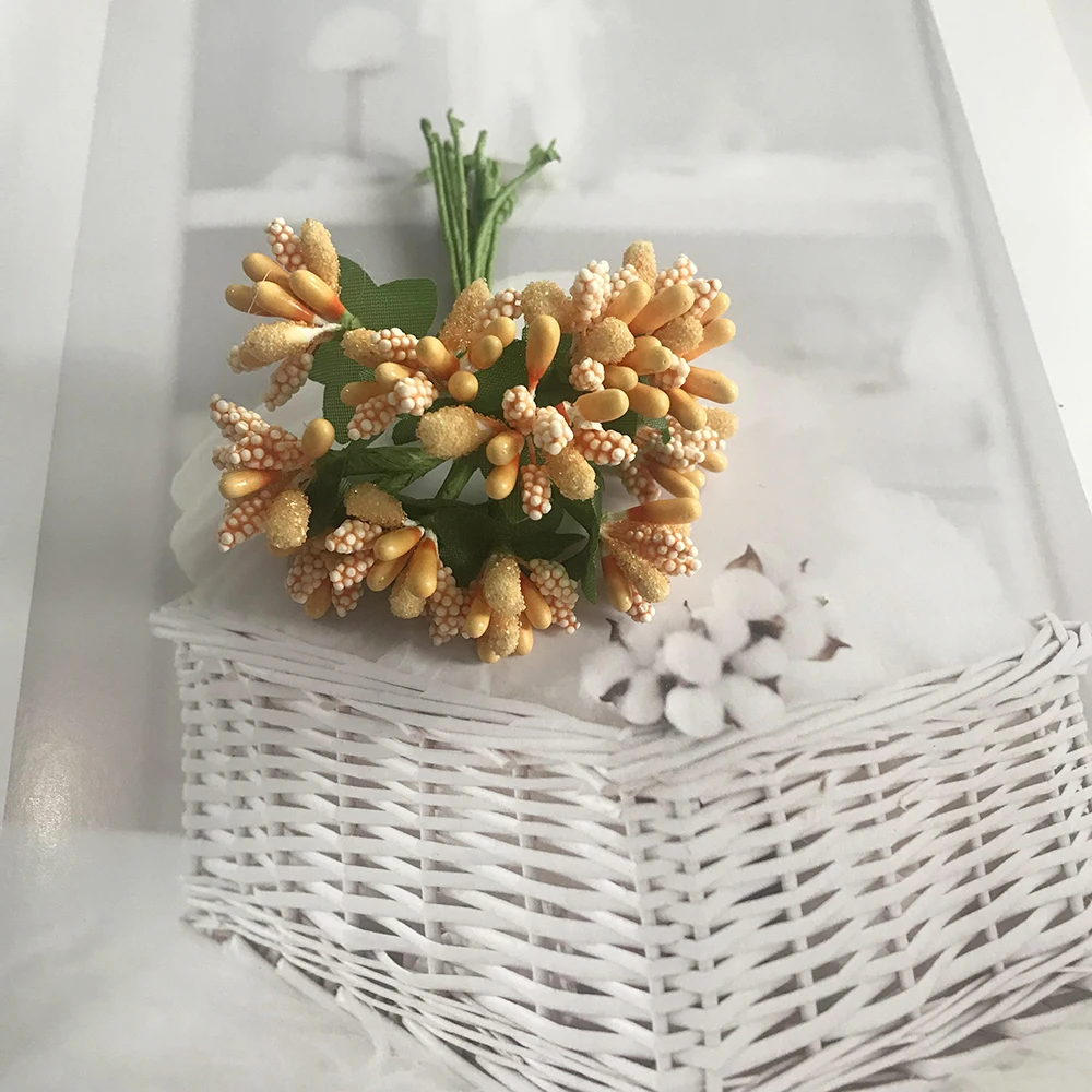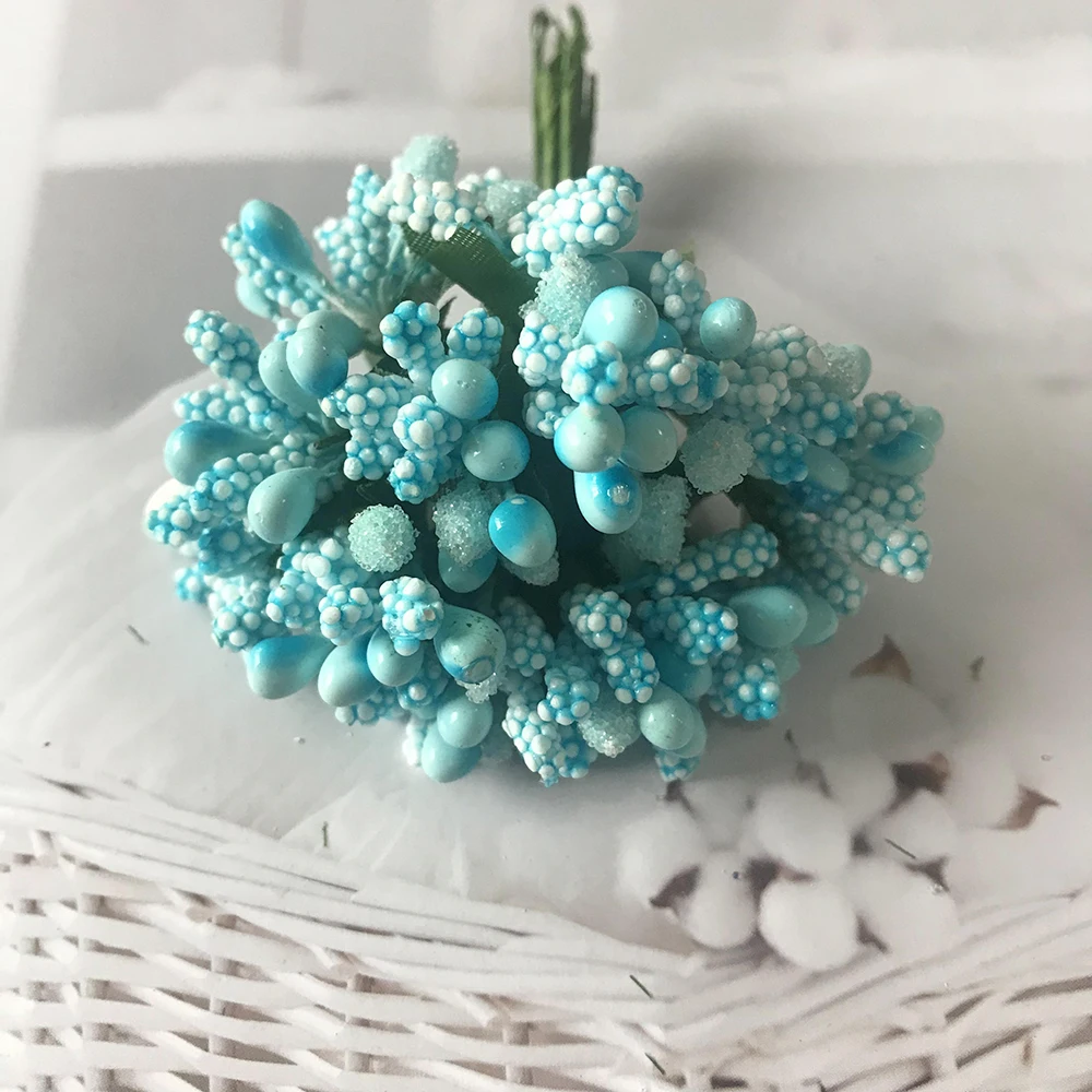 Color: Red - 12PCS/lot Artificial Flower Small Berries Stamen Wire Stem/marriage Leaves DIY Wreath Wedding Scrapbooking Box Decoration Craft