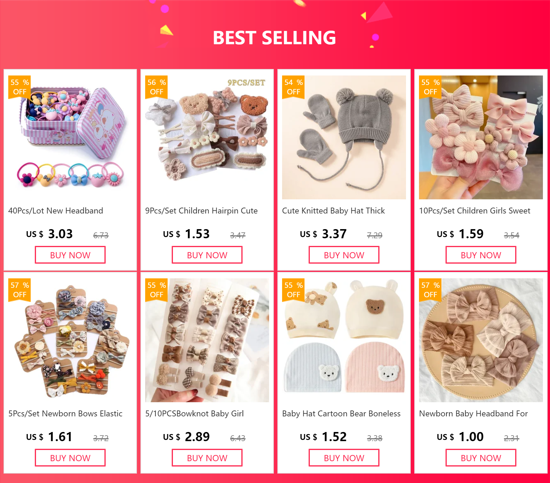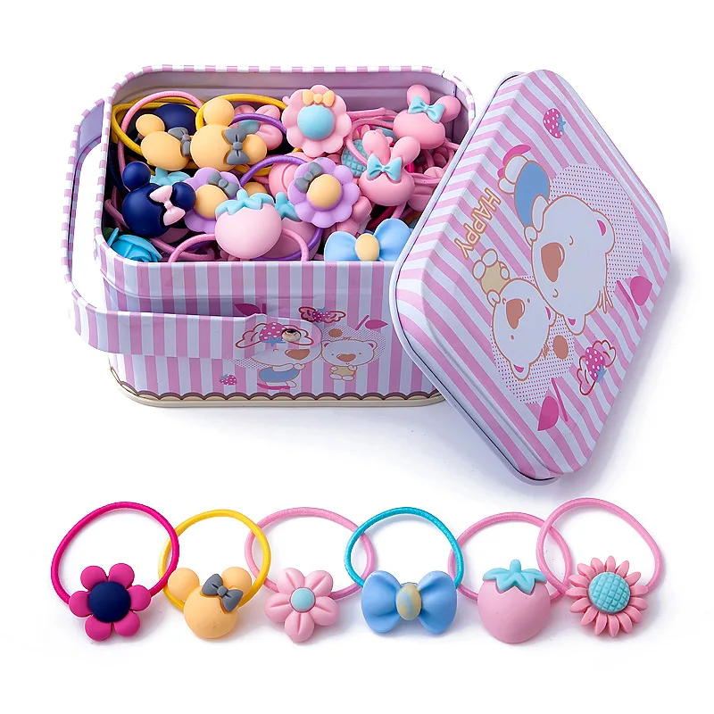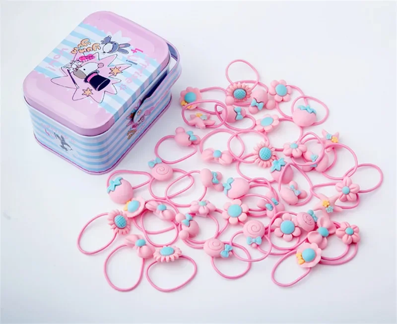 Color: Red - 40Pcs/Lot New Headband Hairband Girls Hair Accessories Gift Box Elastic Hair Bands Flower Hair Clip Bows Cute Hairbands for Kids