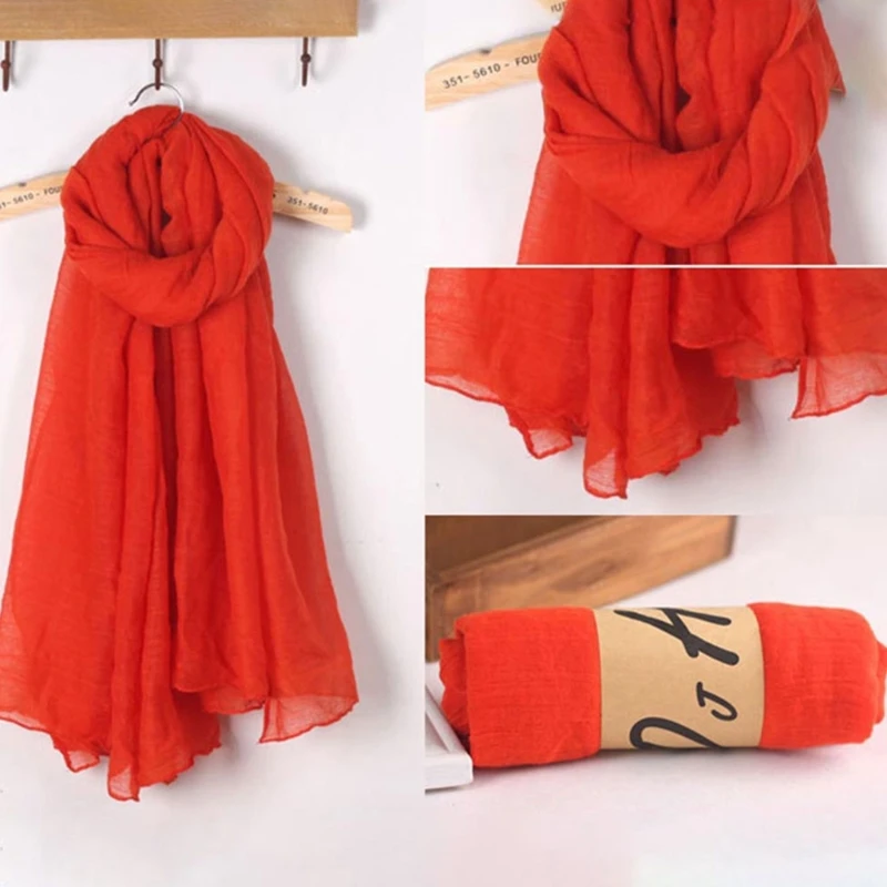 Color: Red - 652F Women Solid Color Scarfs Large Long Lightweight Headscarf Linen Sheer Shawl Wrap