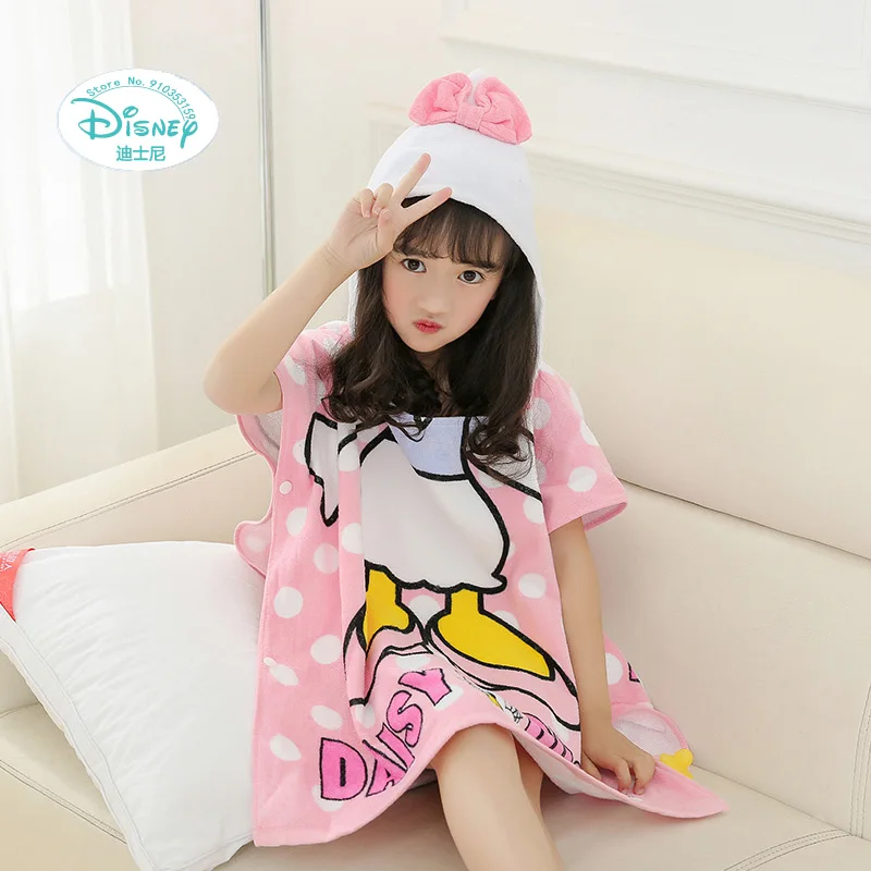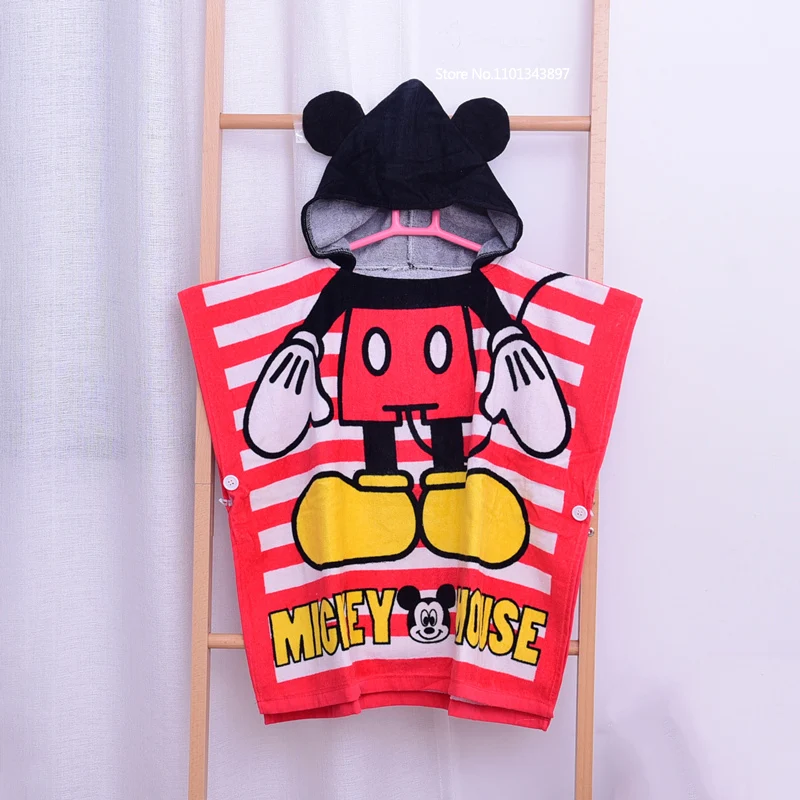 Color: Red - Disney Kids Hooded Bath Towel Child Breathable Beach Towel Mickey Minnie McQueen Car Cartoon Boy Girl Towel 60x120cm