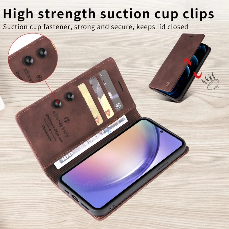 Color: Red, Material: Acrylic - Leather Wallet Case For Samsung Galaxy A15 A05 A14 A24 A34 A54 A13 A23 A33 A53 A73 A52 A32 A22 A12 A72 A03S A04S Flip Book Cover