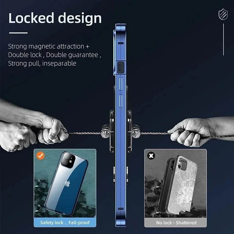 Double-Sided Privacy Magnetic Snap lock Case For iPhone 16 12 13 14 15 11 Pro Max 14 Plus 16 Plus Anti Peeping Full Cover Metal Frame Protection Case