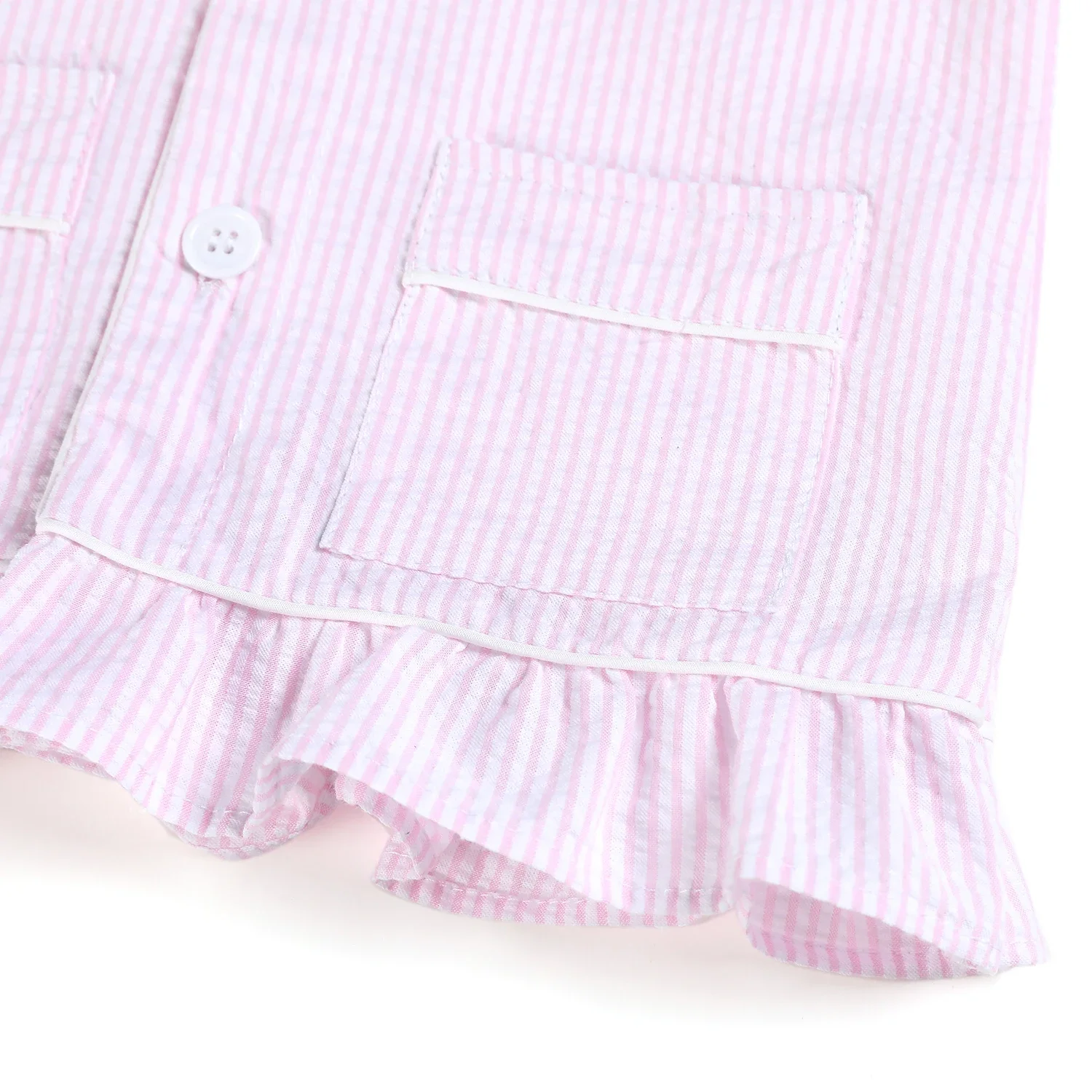 1-12T Summer Baby Pajamas 100% Cotton Seersucker Soft Sibling Matching Sleepwear Kids Clothes Home Wear Girls Boys Pyjamas Sets