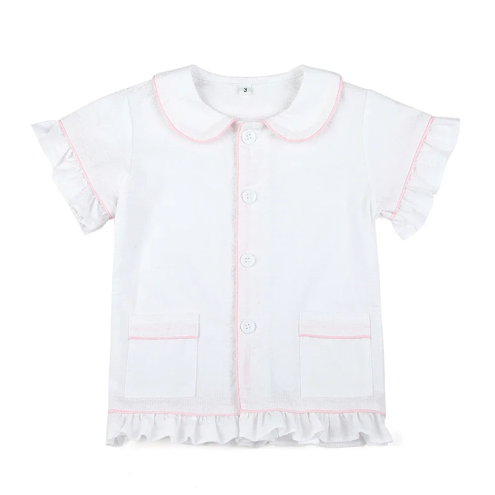 1-12T Summer Baby Pajamas 100% Cotton Seersucker Soft Sibling Matching Sleepwear Kids Clothes Home Wear Girls Boys Pyjamas Sets