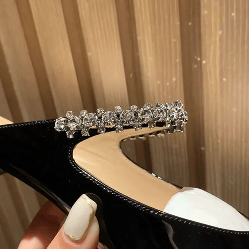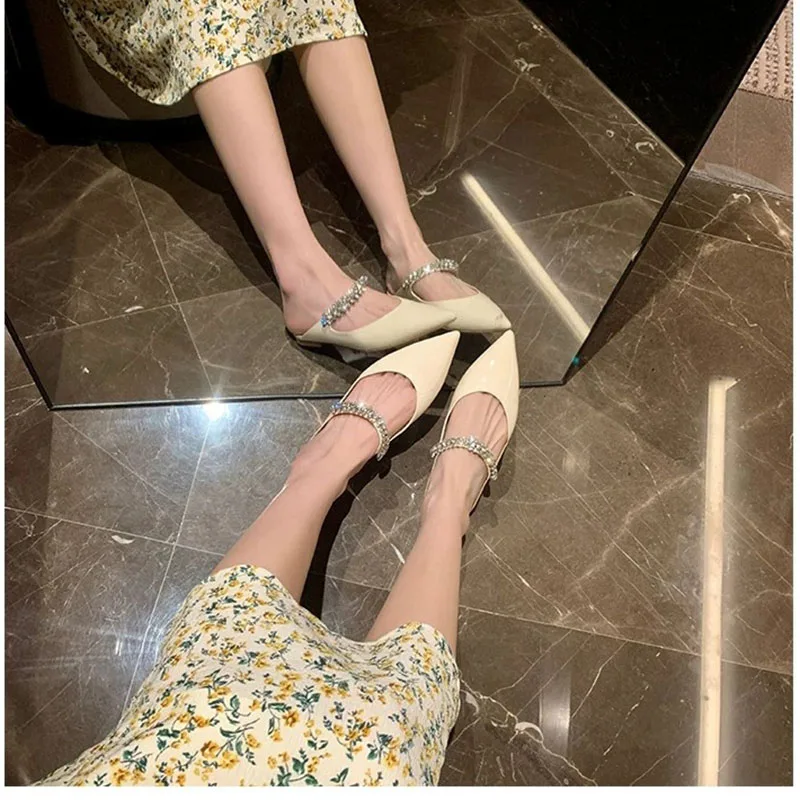 Color: Red, Shoe Size: 39, Ships From: CHINA - Elegant Leather Mules Pointed Toe Stylish Rhinestone Embellished High Heel Sandals Sophisticated Party Evening Shoes Footwear