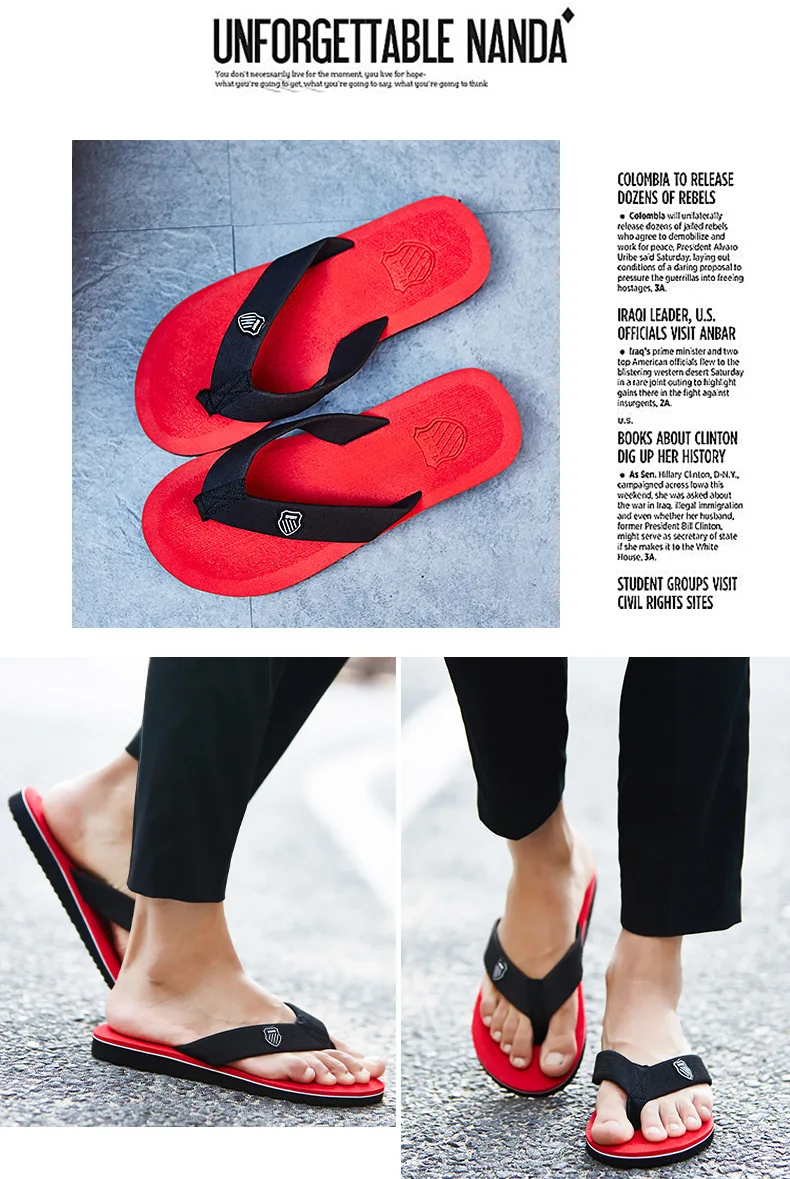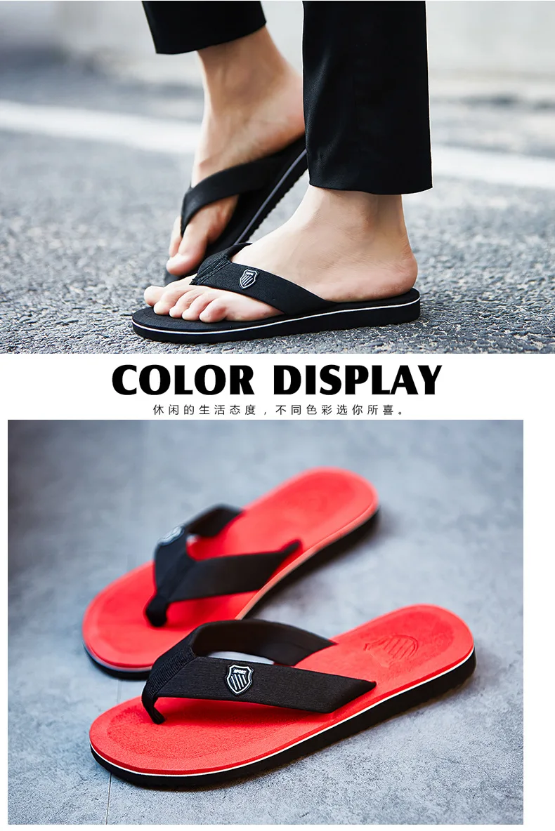 Color: Red, Shoe Size: 45 - 2024 New Shoes Men Summer Men Flip Flops High Quality Beach Sandals Anti-slip Zapatos Hombre Casual Shoes Man Slippers