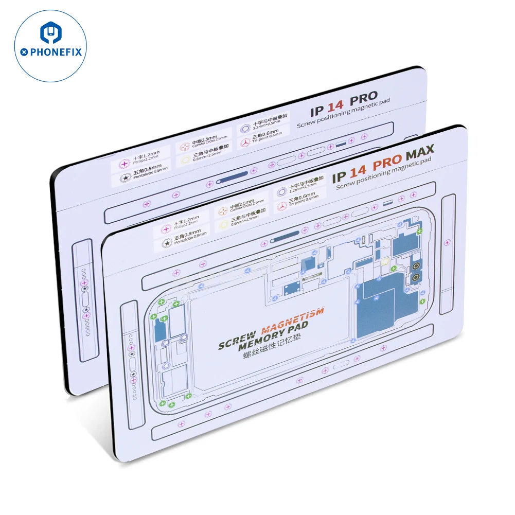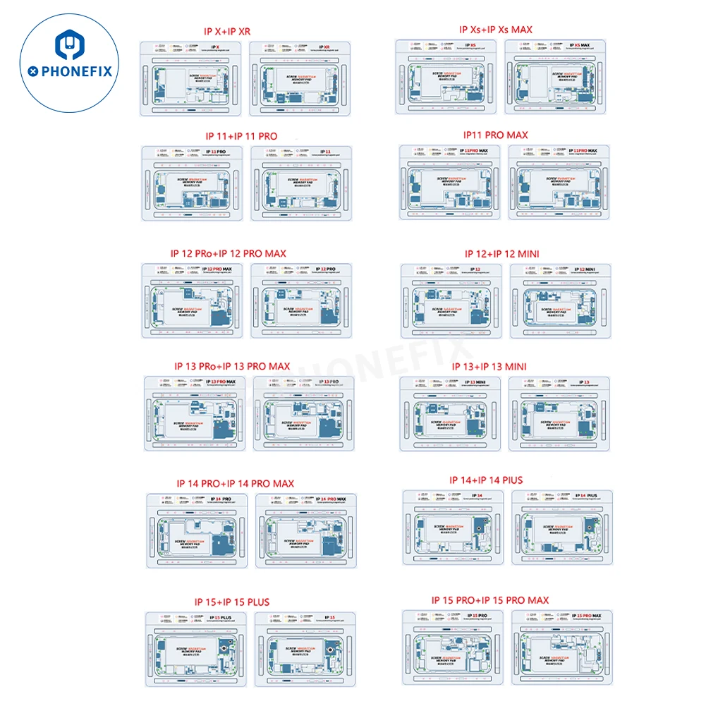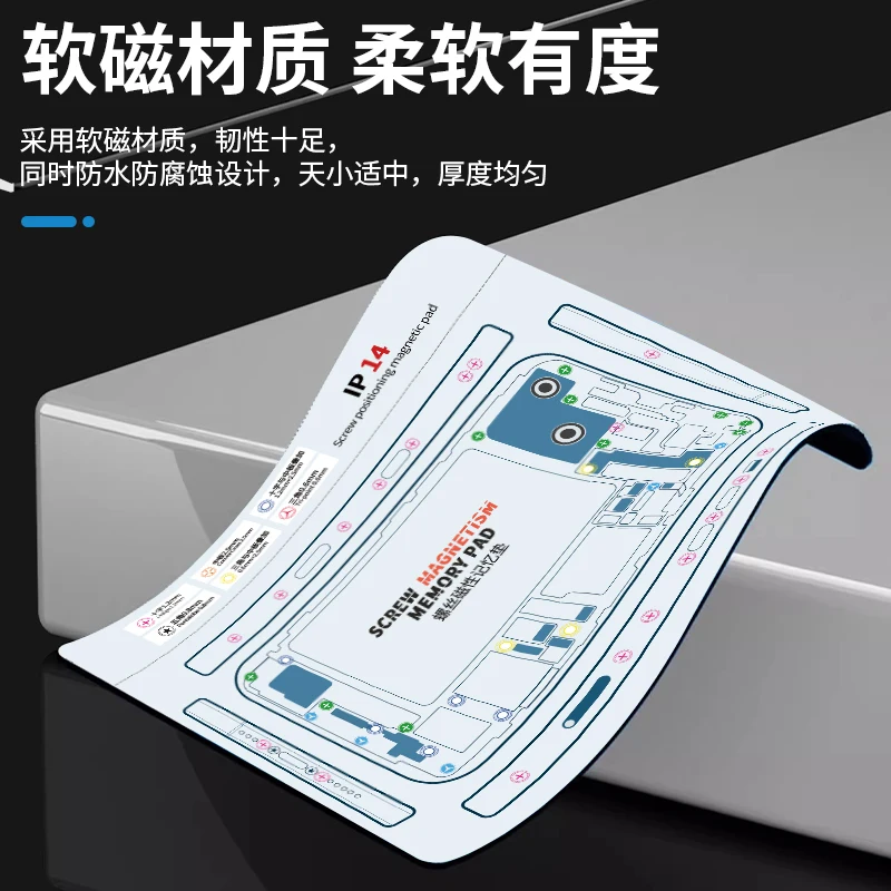 Double-sided screw magnetic positioning pad for iPhone X/XR/XS/XS Max/11/11Pro/12/12Mini/12Pro/12Pro Max/13/13Mini/13Pro/13Pro Max/14/14Plus/14Pro/14Pro Max/15/15Plus/15Pro/15Pro Max. Waterproof high temperature resistance soft screw keeper chart mat for mobile phone maintenance.