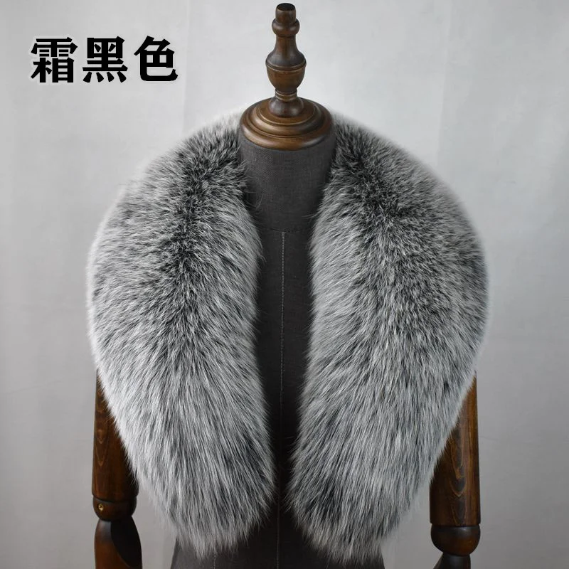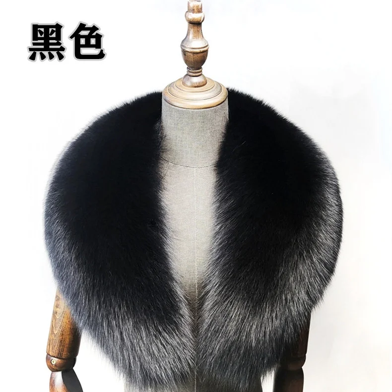 Fox Fur Collar 100% Real Fox Fur Scarf Straight Collar Natural Fur Gray Collar Large Size Neck Warmer Fur Scarf Shawls