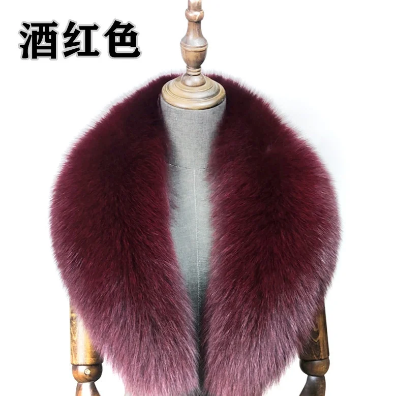 Color: Red, Size: XL - Fox Fur Collar 100% Real Fox Fur Scarf Straight Collar Natural Fur Gray Collar Large Size Neck Warmer Fur Scarf Shawls