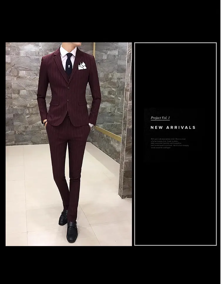 Color: Red, Size: XL - Gray Men Classic Striped/Checked Suits, Business Office 3 Piece, Asian Size Slim Fit Men Dress Jacket & Pants with Vest, S-4XL