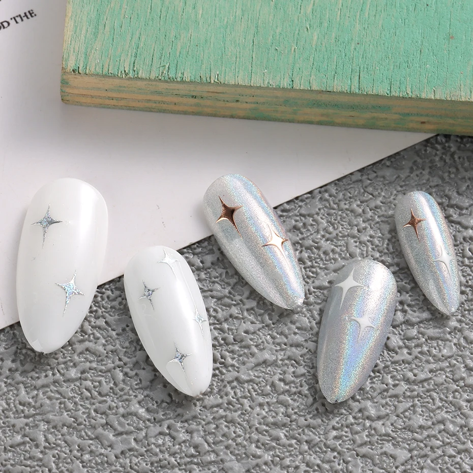 1pcs Sliver Stars Nails Stickers 3D Bronzing Laser White Cross Glossychic Starlight Y2k Stylish Adhesive Manicure Decorations