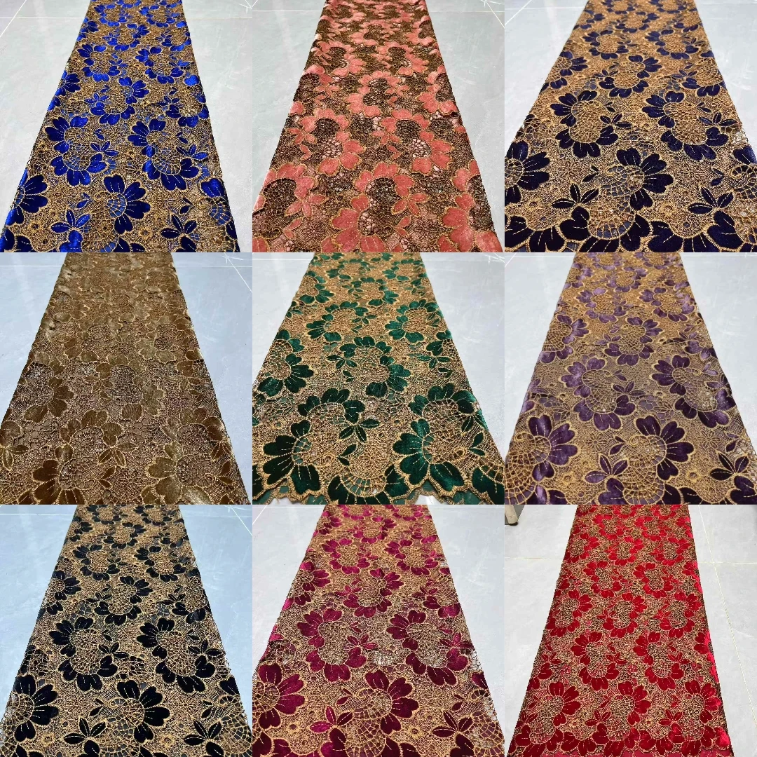 Color: Red, Width: 120cm, Length: 5 yards - 2026 Purple African Nigerian Velvet Lace Fabric High-Quality Embroidery for Wedding Party Sewing SHXI