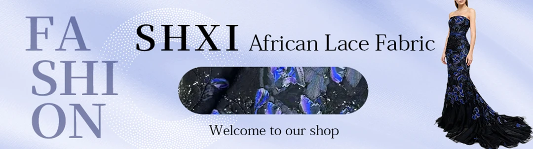 The SHXI brand's commitment to quality is evident in this purple African Nigerian velvet lace fabric, featuring intricate embroidery that adds a touch of elegance to any garment.