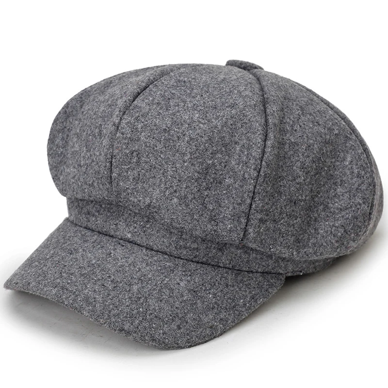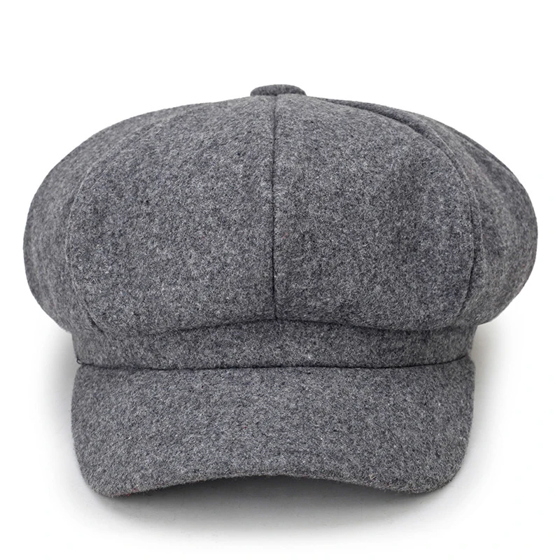 Color: Red - Woolen solid color beret fashion outdoor cotton hat autumn and winter windproof hats men's and women's universal caps
