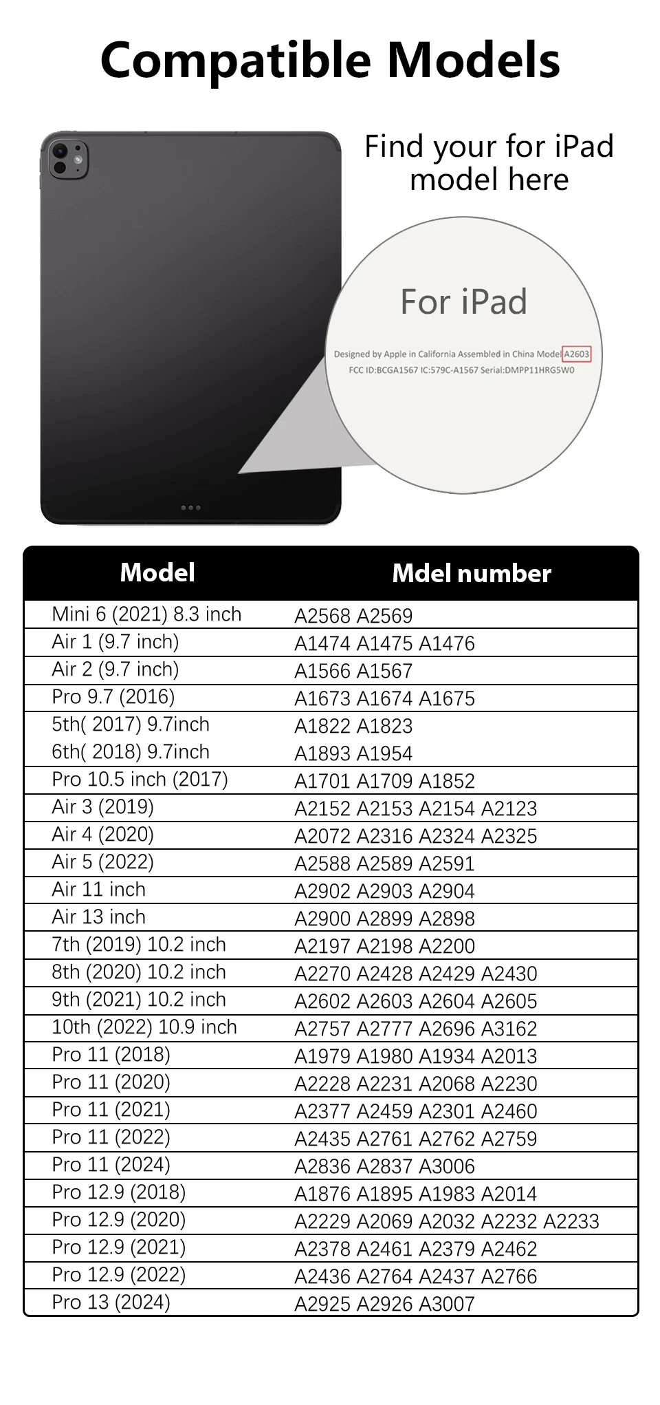 Applicable Model 7: For Ipad 2018 6th Generation
