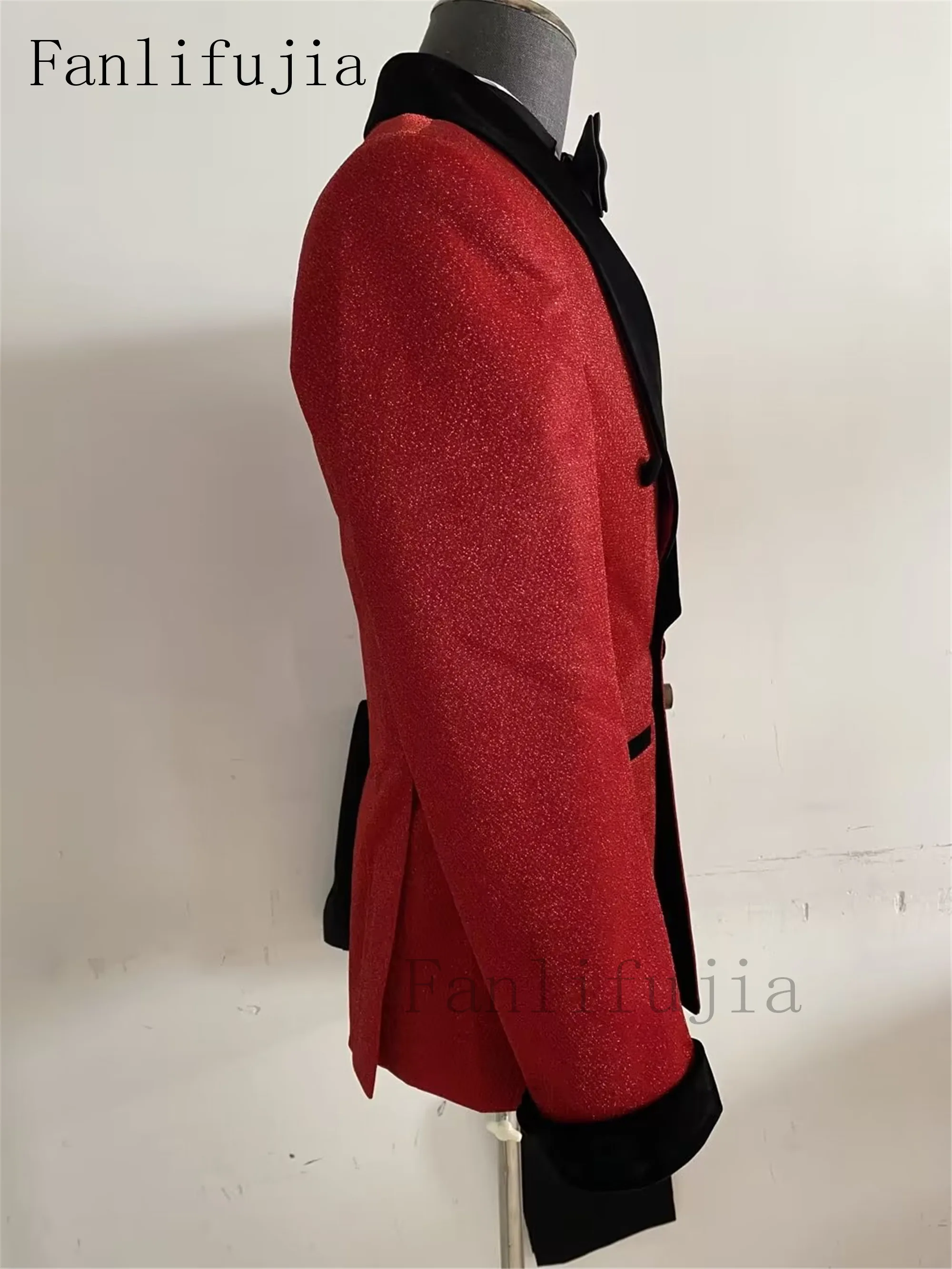 Color: ROYAL BLUE, Size: 4XL - Fanlifujia Luxury Red Glitter Suits Men Groom Wedding Tuxedo Double Breasted Blazer Formal Evening Party Prom Dress 2 Pieces Set
