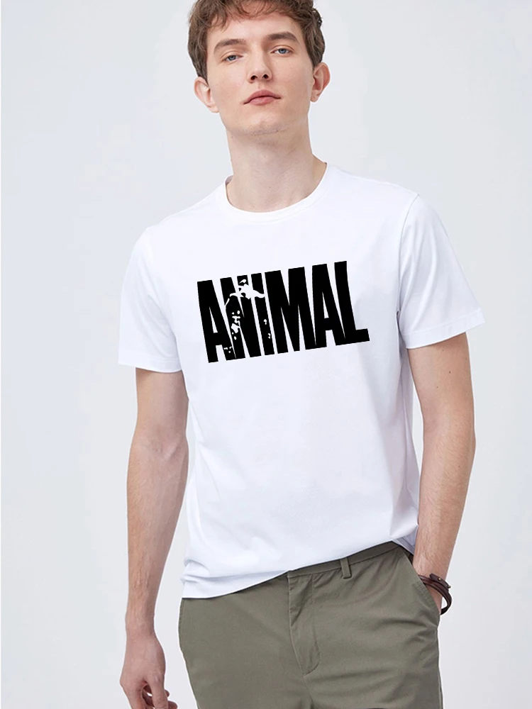 Color: ROYAL BLUE, Size: XL - Fashion ANIMAL Letter Print Men T-Shirts Street Funny Short Sleeves Loose Oversized T Shirt O-Neck Breathable Cotton Clothing