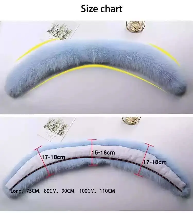 Fox Fur Collar 100% Real Fox Fur Scarf Straight Collar Natural Fur Gray Collar Large Size Neck Warmer Fur Scarf Shawls