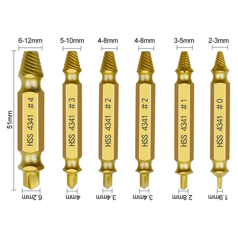 Color: Silver - HSS Extractor Double Head Screw Slide Tooth Removal Screwdriver Screwdriver Bit Broken Wire 6pc Tool Set