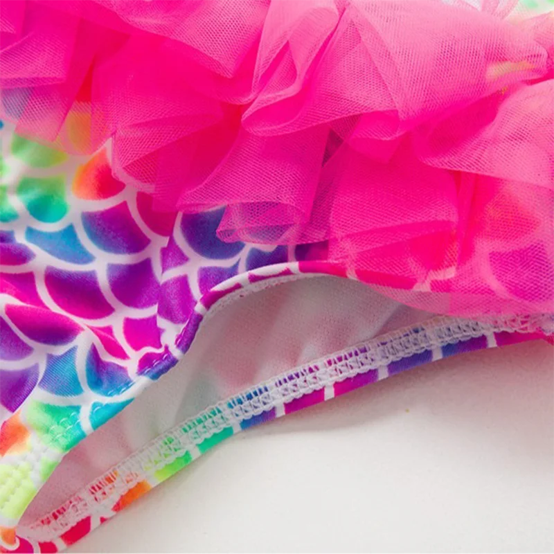 One-piece girls swimsuit, fish scales Designed with a cute ruffle hips.