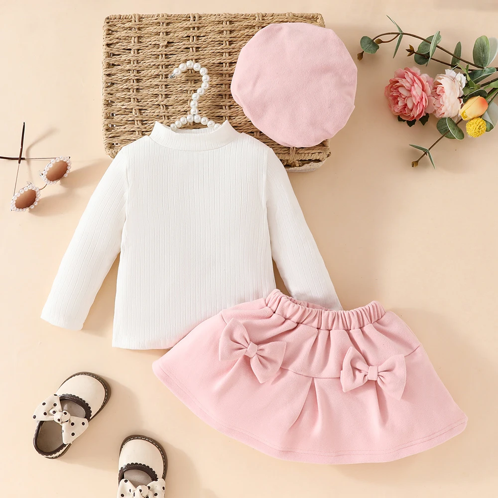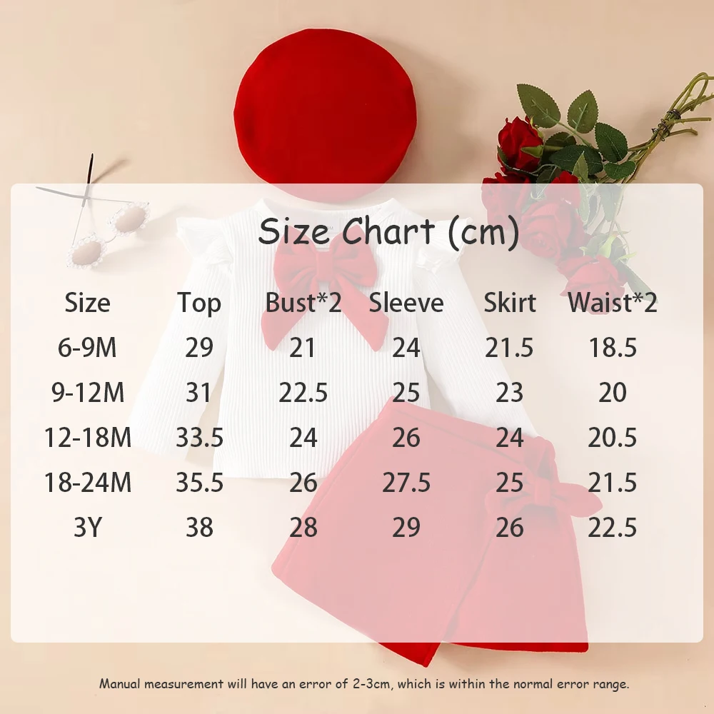Color: Silver, Kid Size: 18M - Baby Girls Clothes New Year Set 0-3Y Long Sleeve Big Bow Top Irregular Skirt and Beret 3Pcs Toddler Christmas Clothes