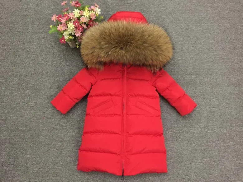 Color: Silver, Kid Size: 4T - Children Girl boy Winter real fur thickened down jackets 90 down Long Coat jacket overcoat baby kids clothing -30 outwear ws1245