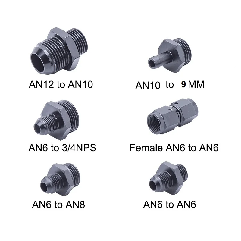 AN6 to 3/4NPS , AN6 to AN6 , AN6 to AN8, AN10 to 9MM, AN10 to AN12 ,Female AN6 to Female AN6,an8 to m12*15