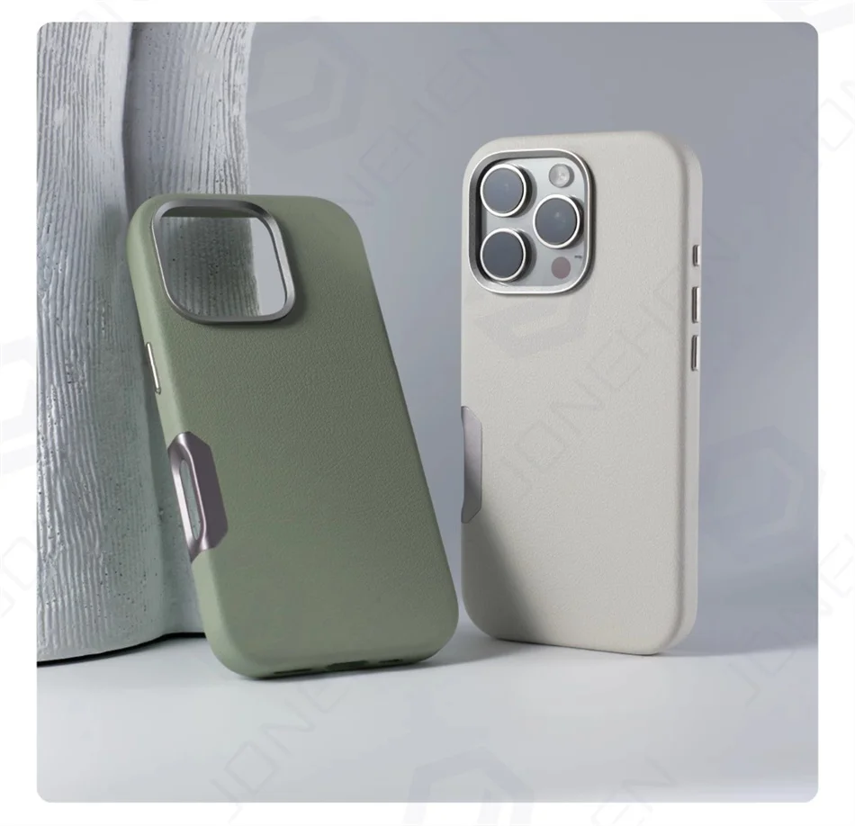 Color: Silver Pink, Material: Vinyl - For Magsafe Leather High Quality Alloy Camera Button Magnetic Case For iPhone 16 Pro Max 16pro Wireless Charge Shockproof Cover