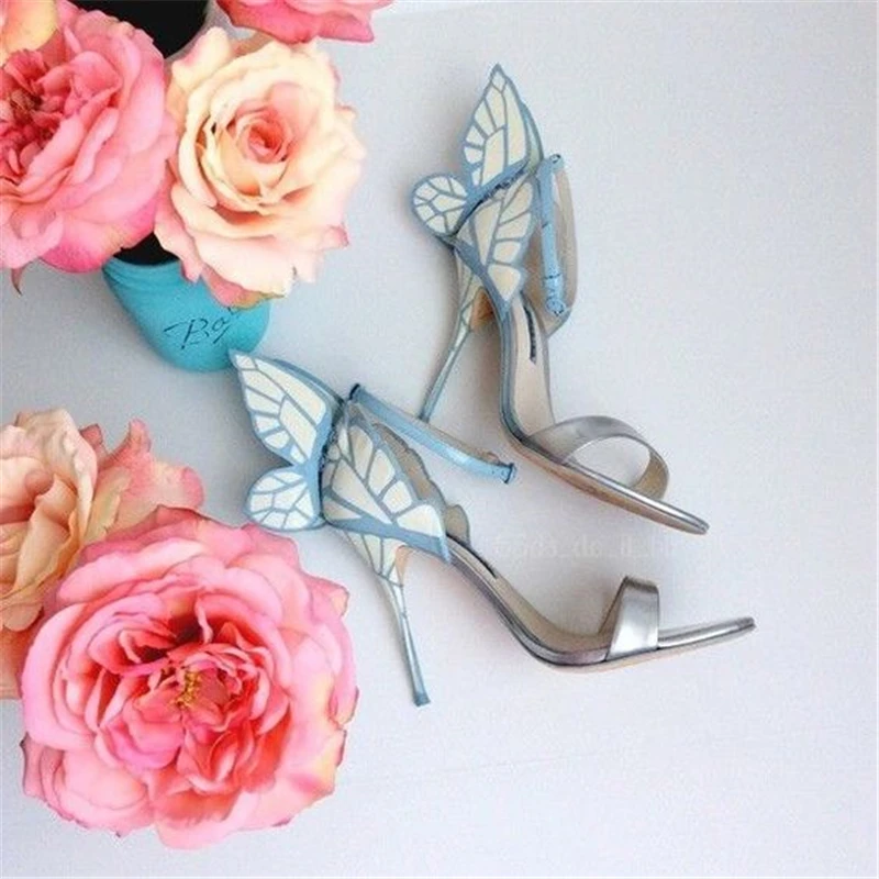 Color: Silver, Shoe Size: 9 - Women Summer Sandals Fashion Embroidered Satin Butterfly High Heeled Footwear Adjustable Ankle Strap Shoes Women high heels