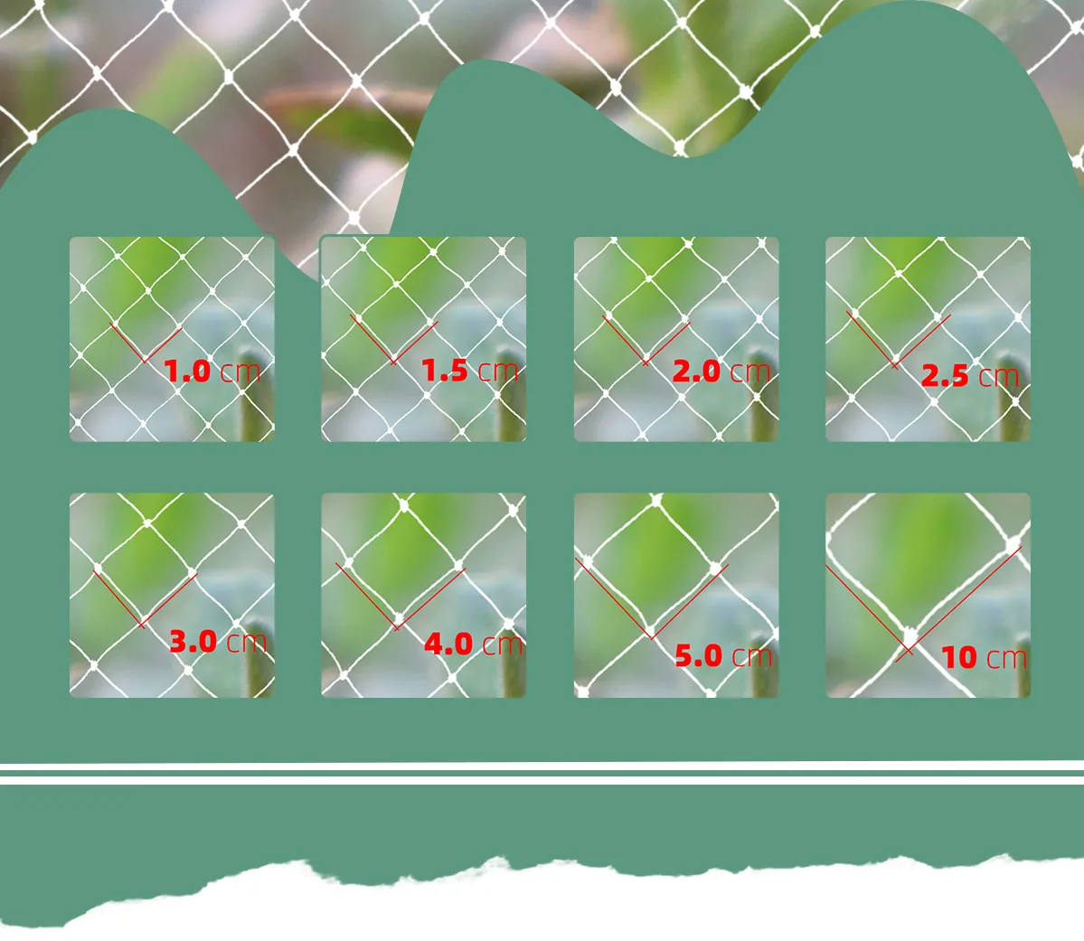 Knitted anti bird nets offer long-term protection for all types of crops and plants against all birds and predators. It creates bird-proof enclosures that allow all of the light and moisture to reach your crops. You can solve bird problems at your plant, office complex, warehouse, sports facility, or nearly anywhere easily and inexpensively. Lighter-weight Standard.