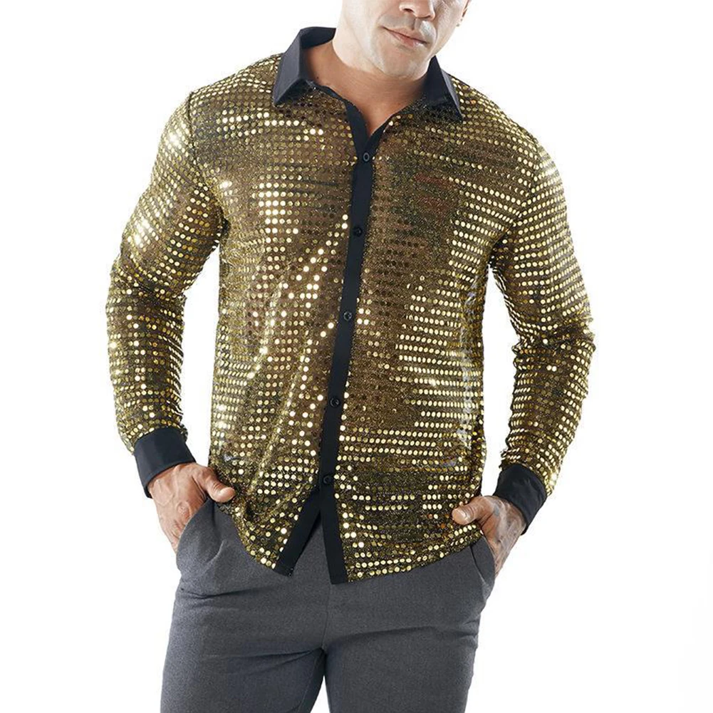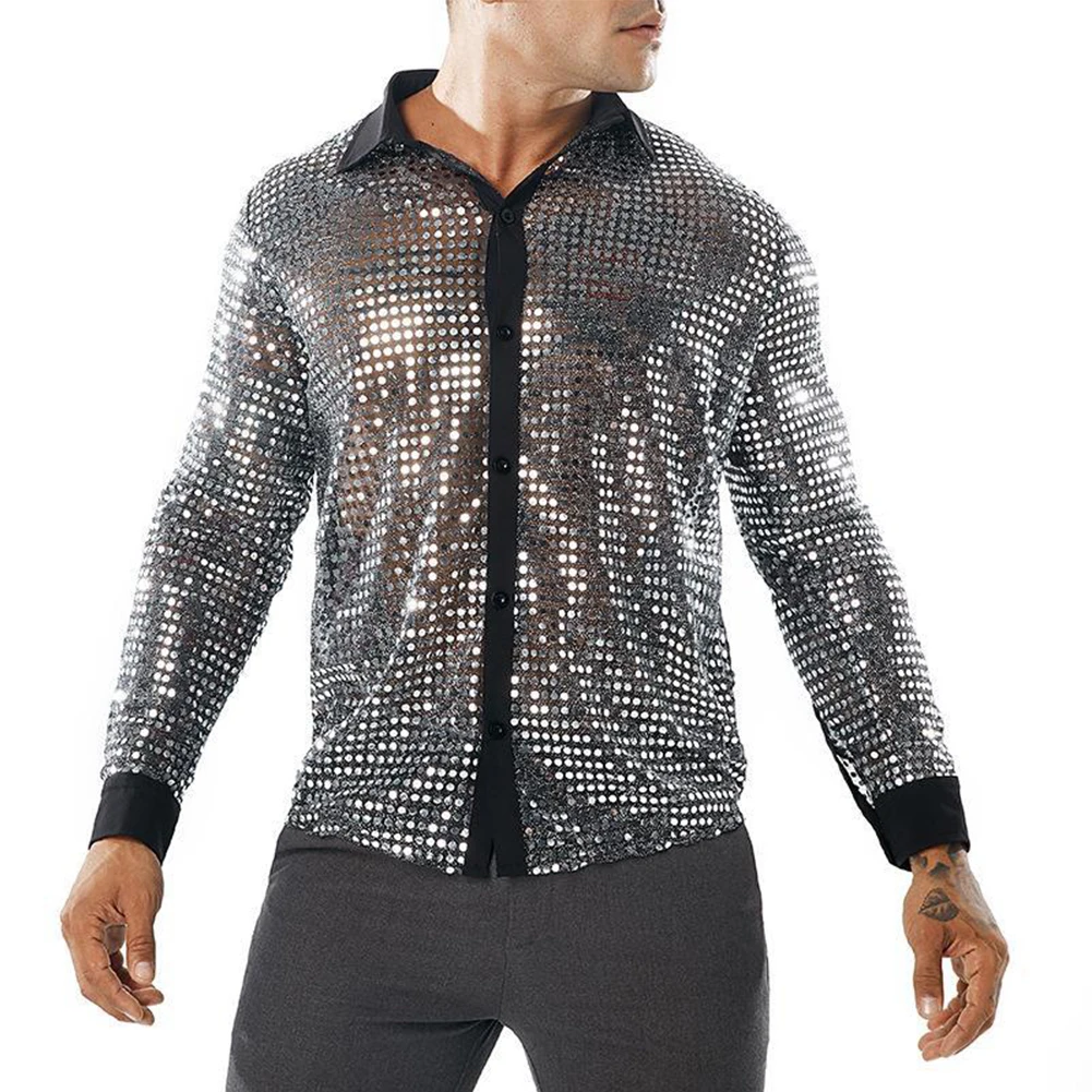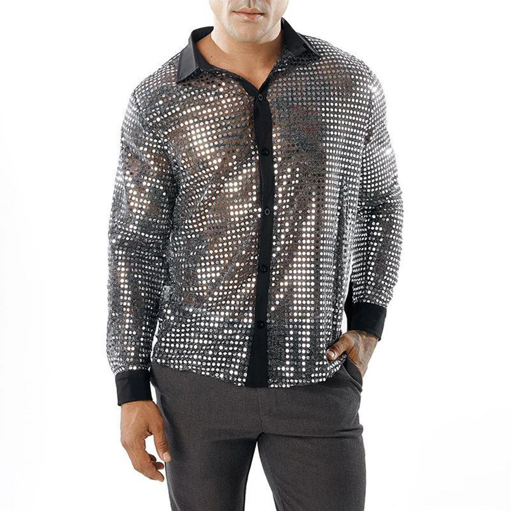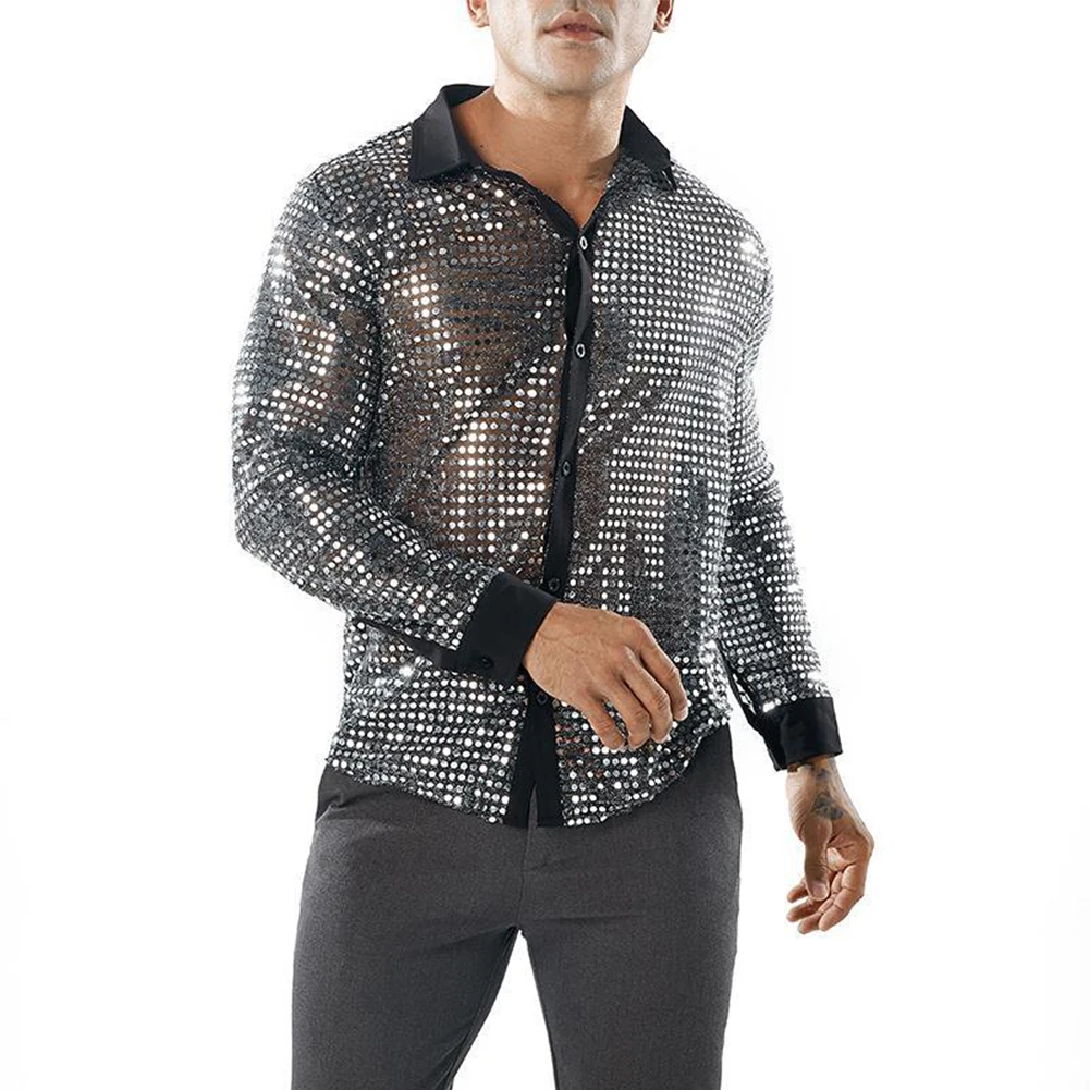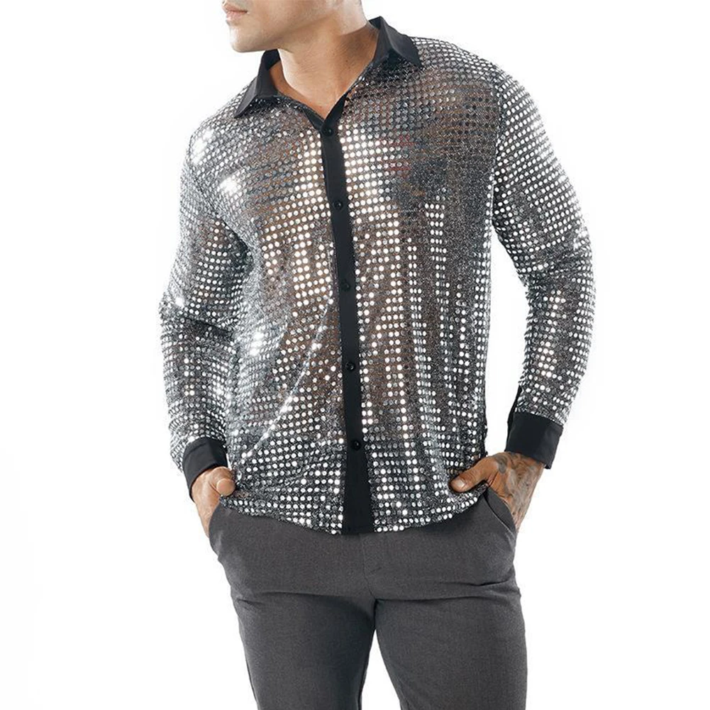 * Item Features:Mens ,Sparkly ,Sequins ,Party ,Dance, Long Sleeve ,Shirts, Retro 70s Disco ,Nightclub, Shirt, Tops