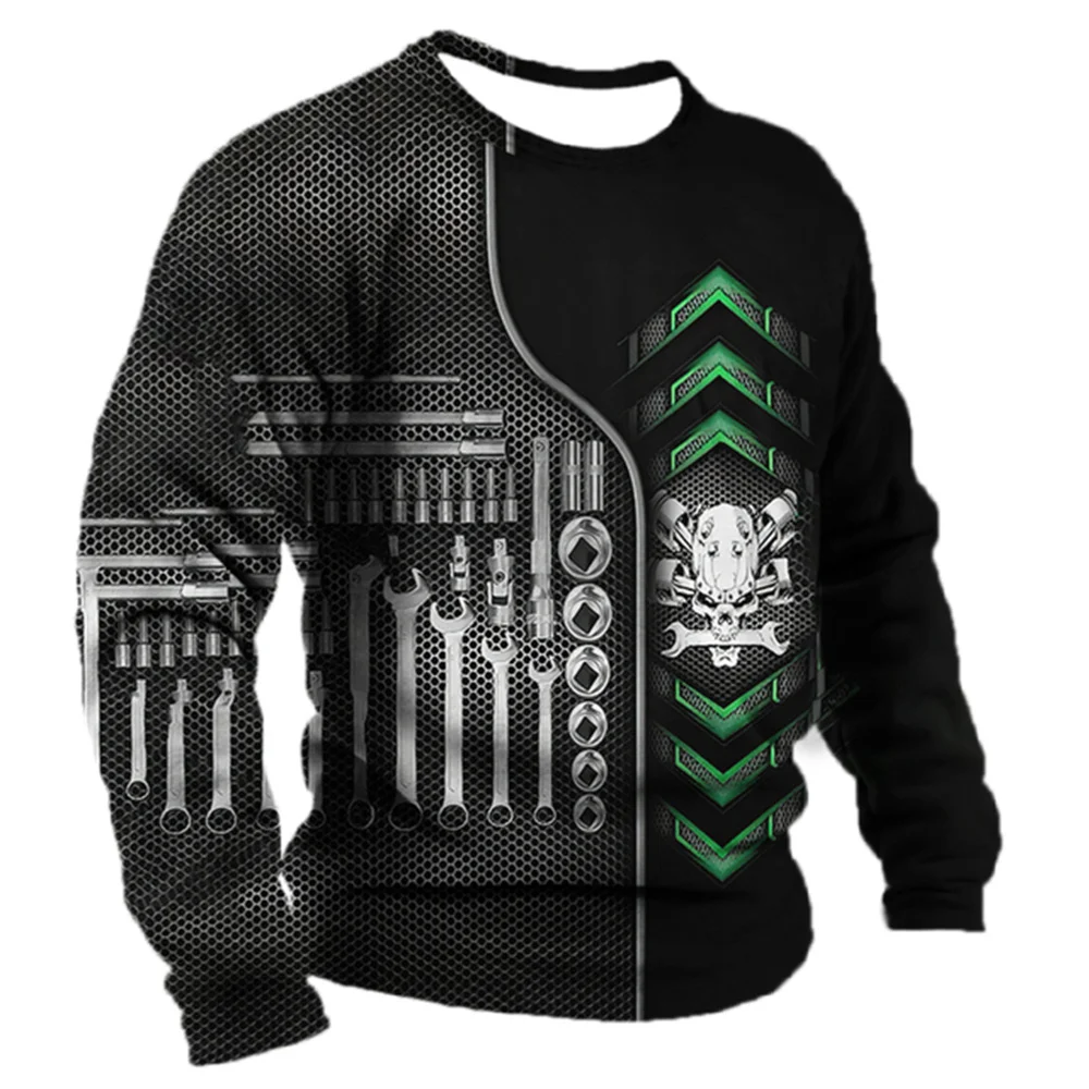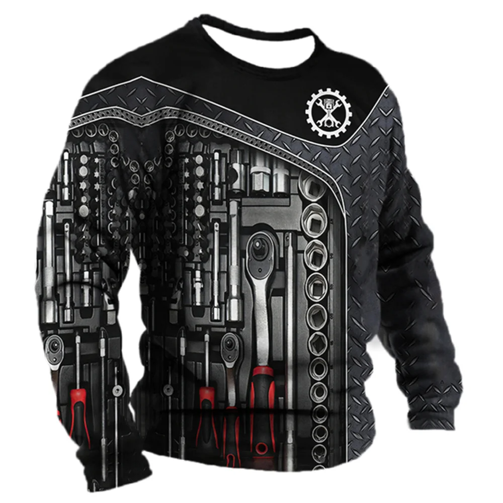 Color: Silver, Size: S - Men's T -shirt Retro T -shirt Summer clothing personalized name Mechanic mechanic 3D printing 5xl sports shirt long -sleeved