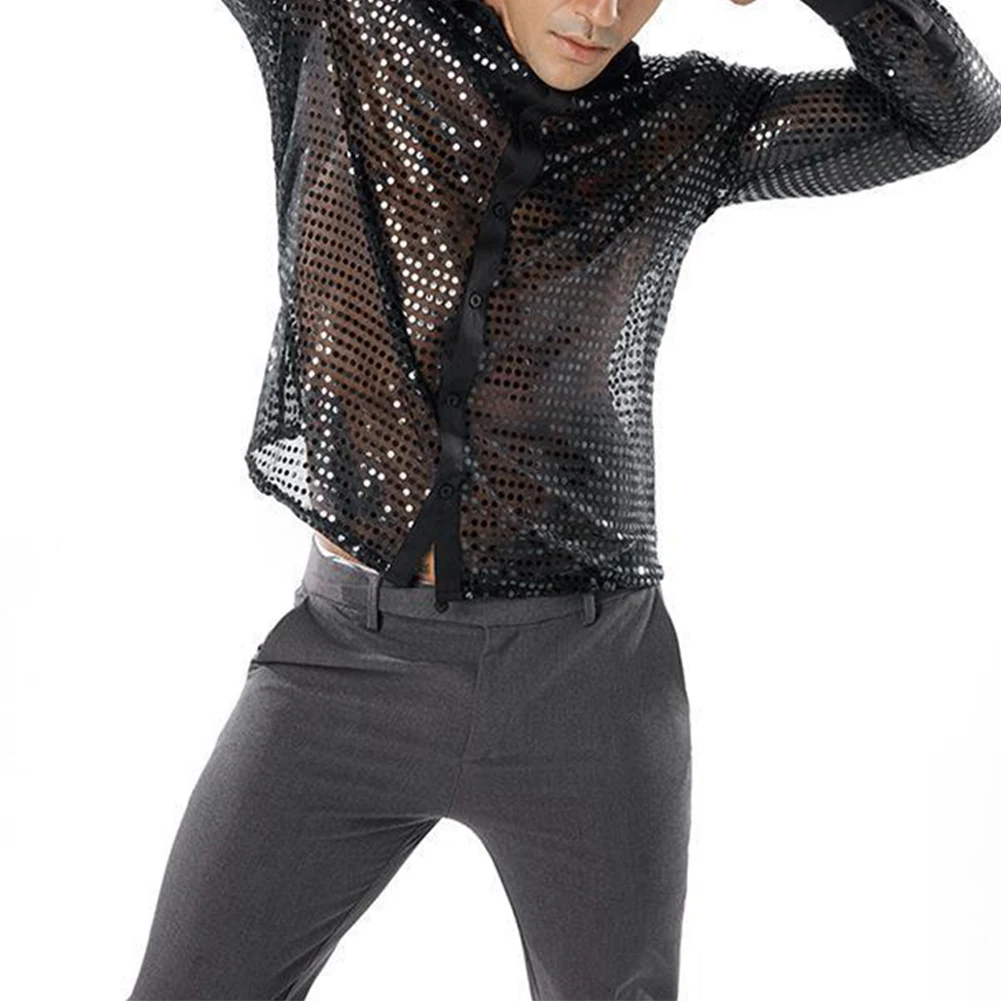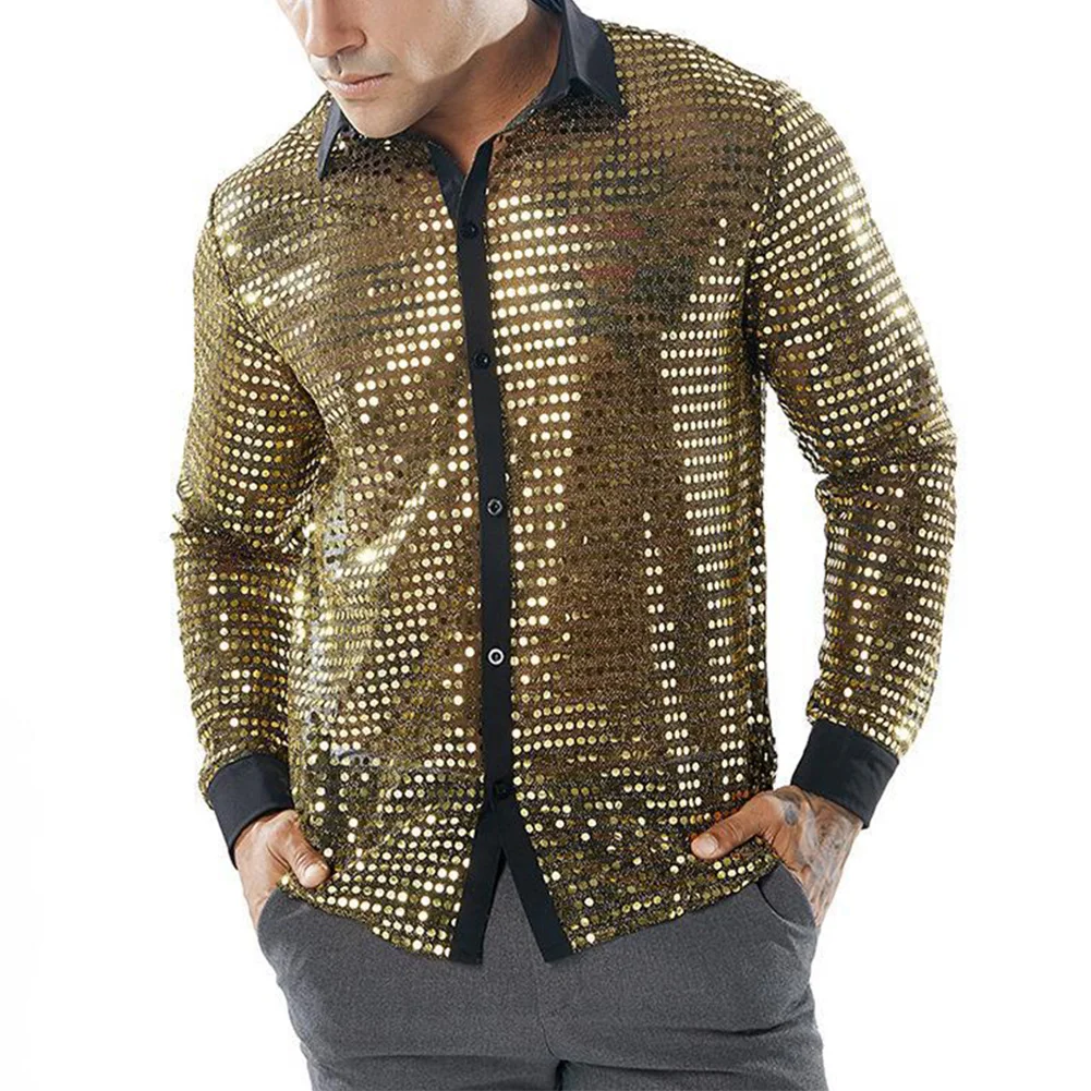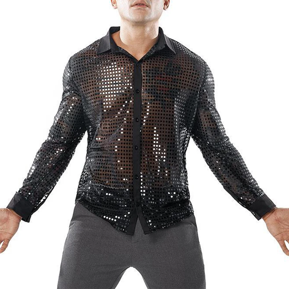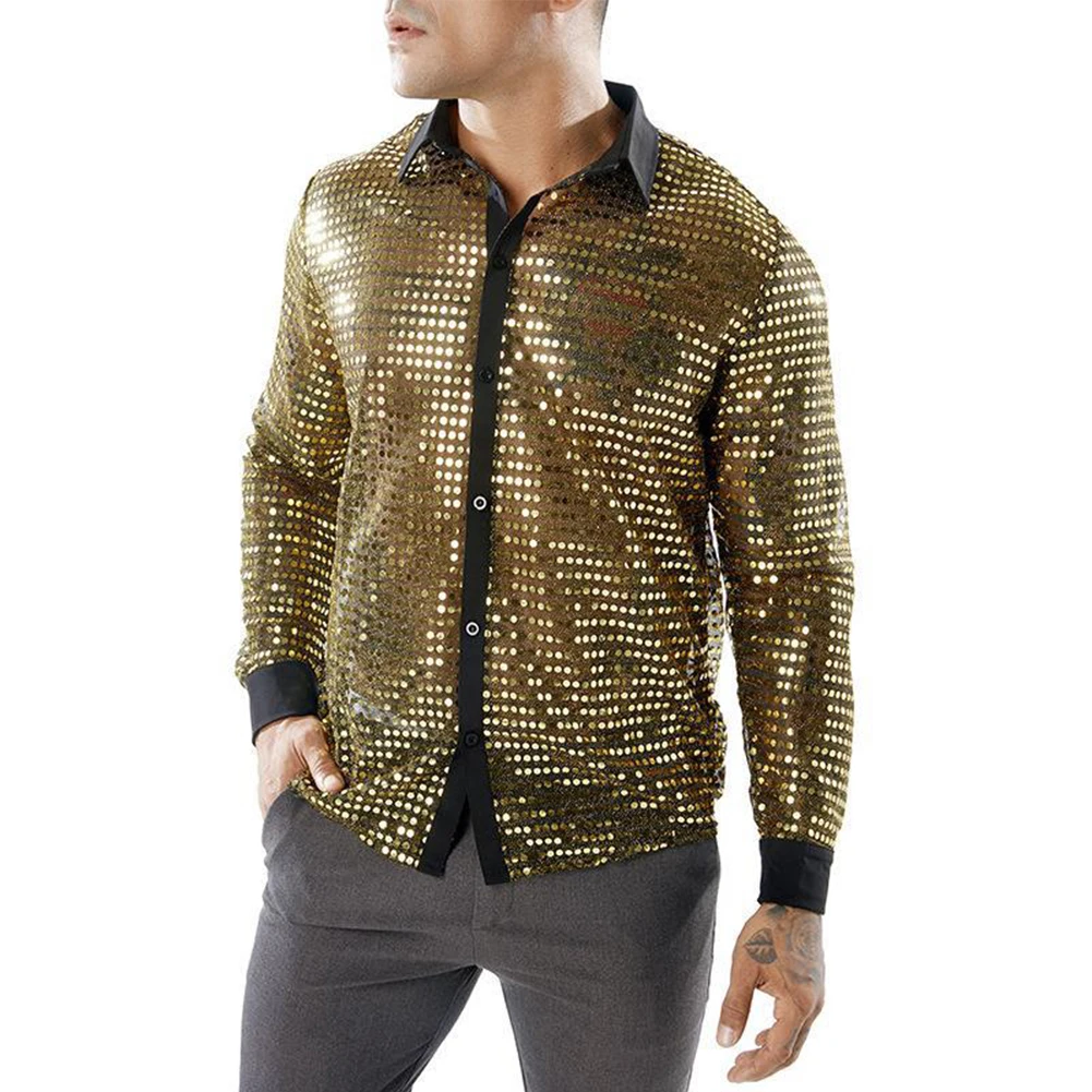 * Item Features:Mens ,Sparkly ,Sequins ,Party ,Dance, Long Sleeve ,Shirts, Retro 70s Disco ,Nightclub, Shirt, Tops
