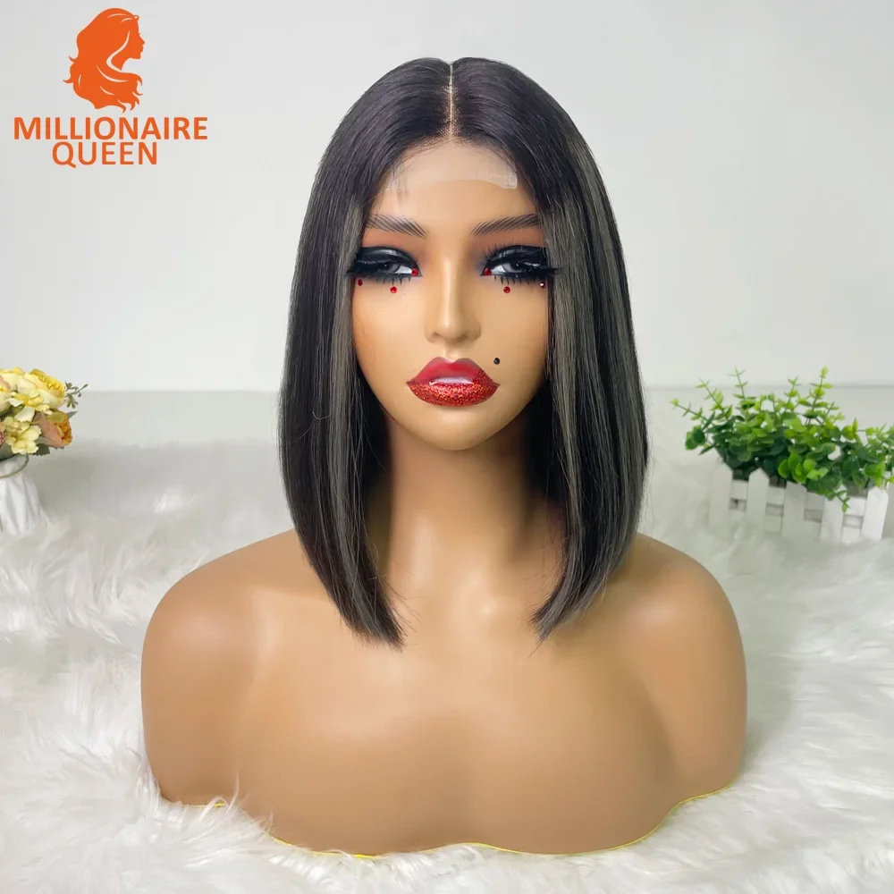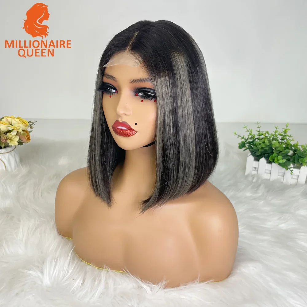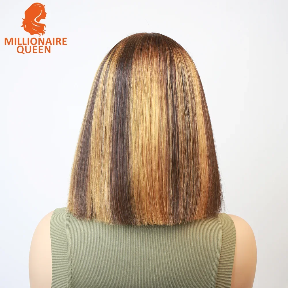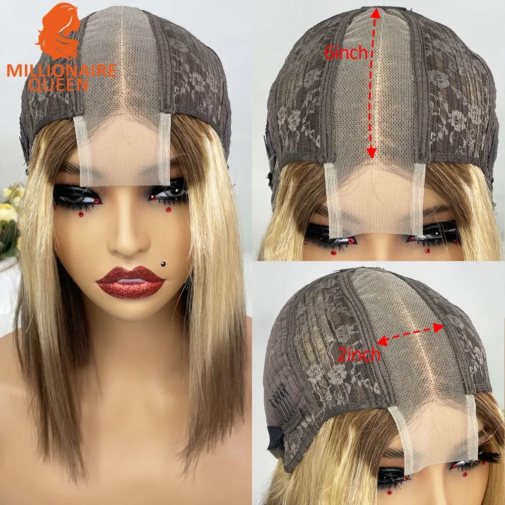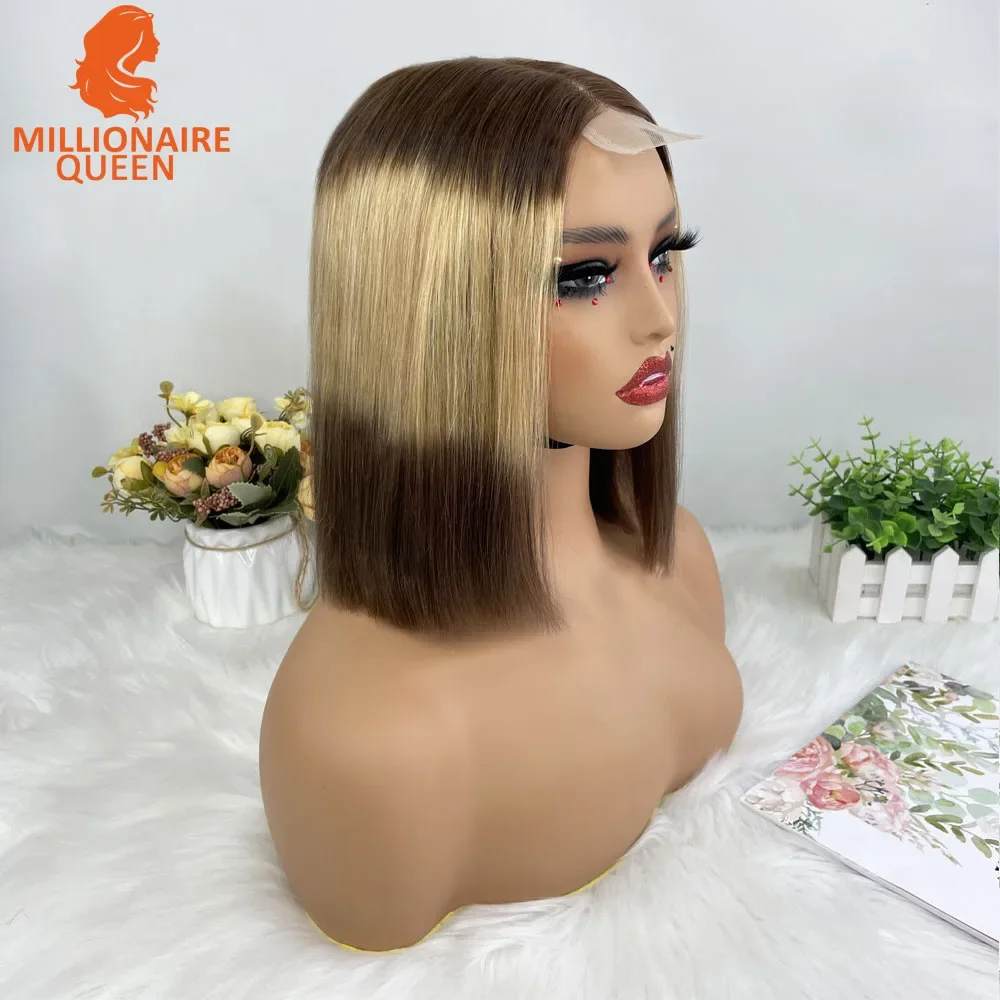 Color: Silver, Stretched Length: 8inches, Density: 250%, Lace Size: 2x6 - Highlight P4/30 Brown Vietname Bone Straight Bob Wig Super Double Drawn Human Hair 2x6 Glueless Lace Closure Wig For Black Women