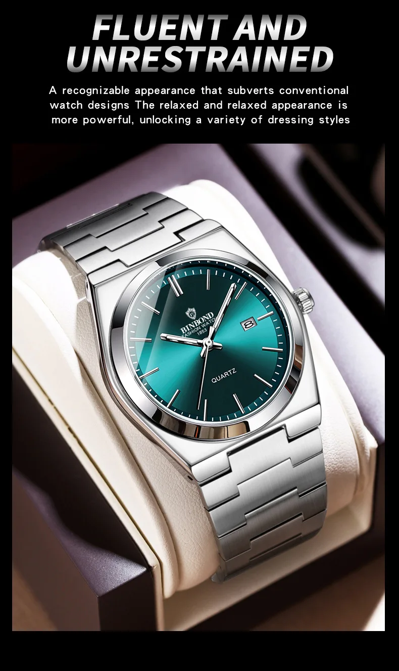 Color: Silver - UTHAI Men Watch Light Luxury Brand Stainless Steel Double Calendar Waterproof Male Business Leisure Fashion Quartz Clock Watches