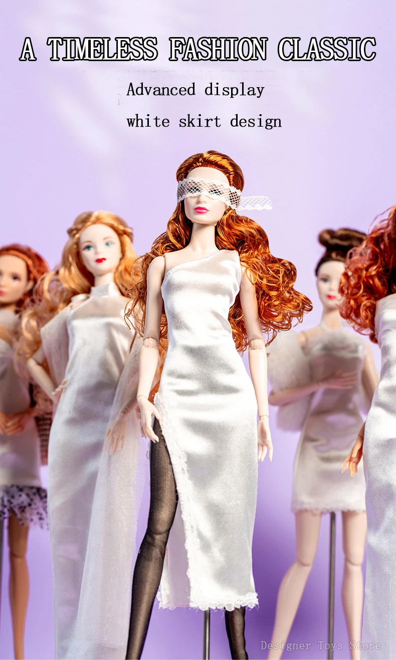 Color: SKY BLUE - 32cm Supermodel Doll Clothes Suit European Fashion Trendy Little White Skirt Exquisite Accessories Set DIY Toy Collector Gifts