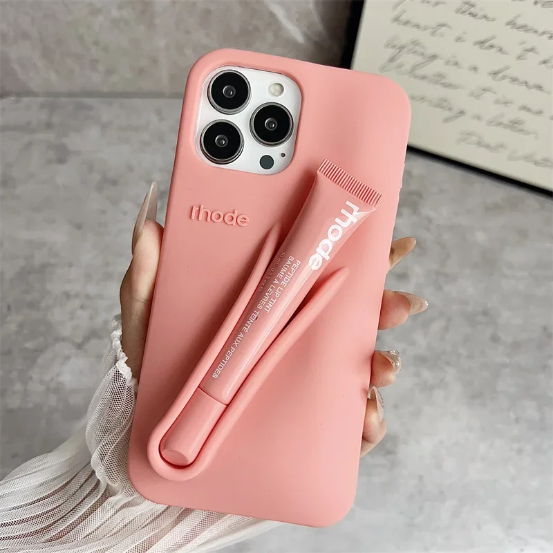 Color: SKY BLUE, Bundle: Bundle1, Material: aluminum - Phone Case For iPhone 12 13 14 15 16 Pro Max Plus 17 Air Portable Lip Gloss Holder Lipstick Silicone Soft Bumper Cover Lip Glaze