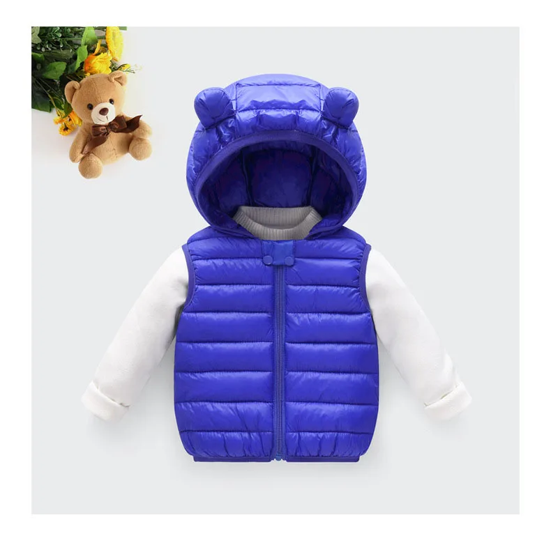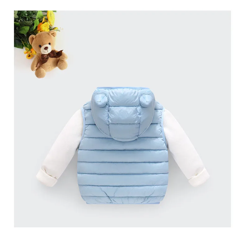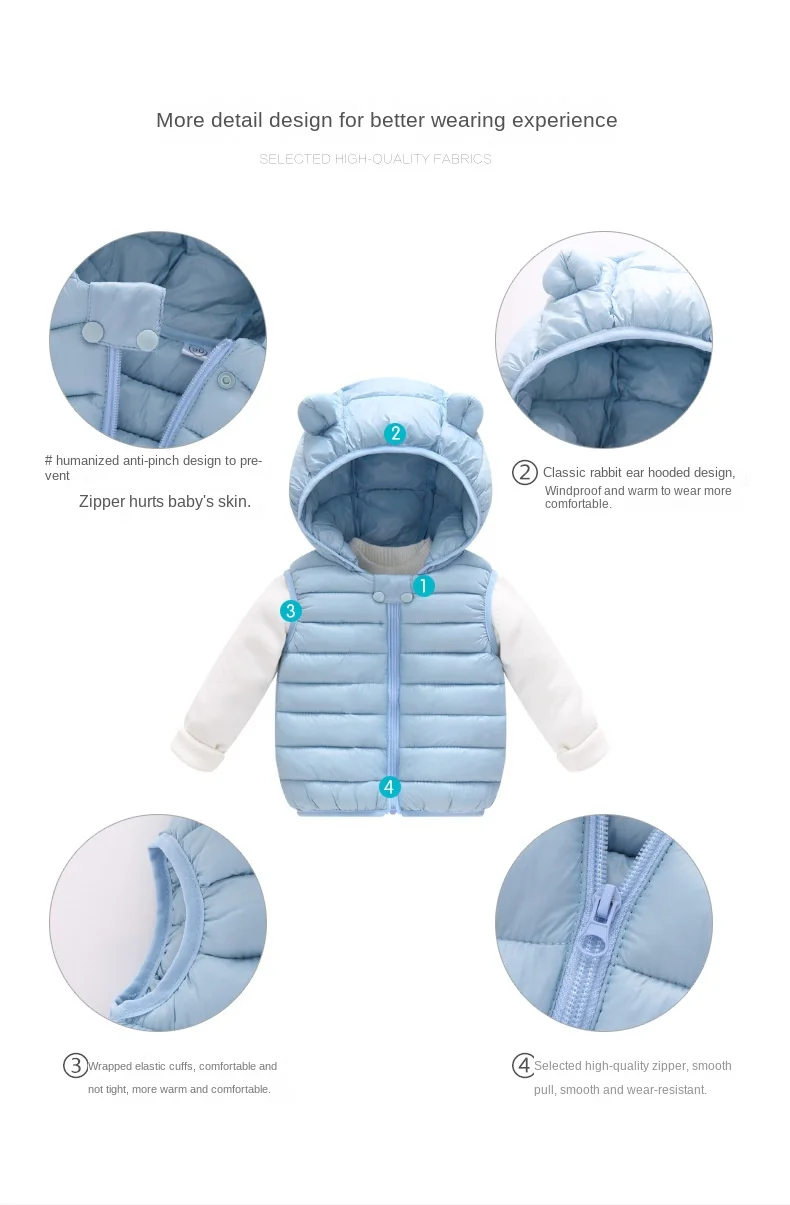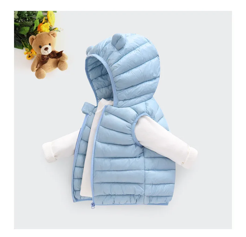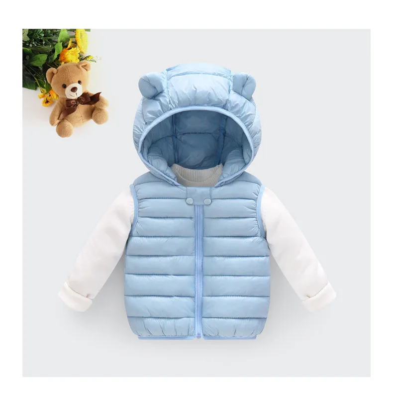 Color: SKY BLUE, Kid Size: 4T - Baby Boys Girl Warm Down Vest Toddler Cotton Waistcoat Children Autumn and Winter Clothes Kids Hooded Jackets 1-6 Years Old