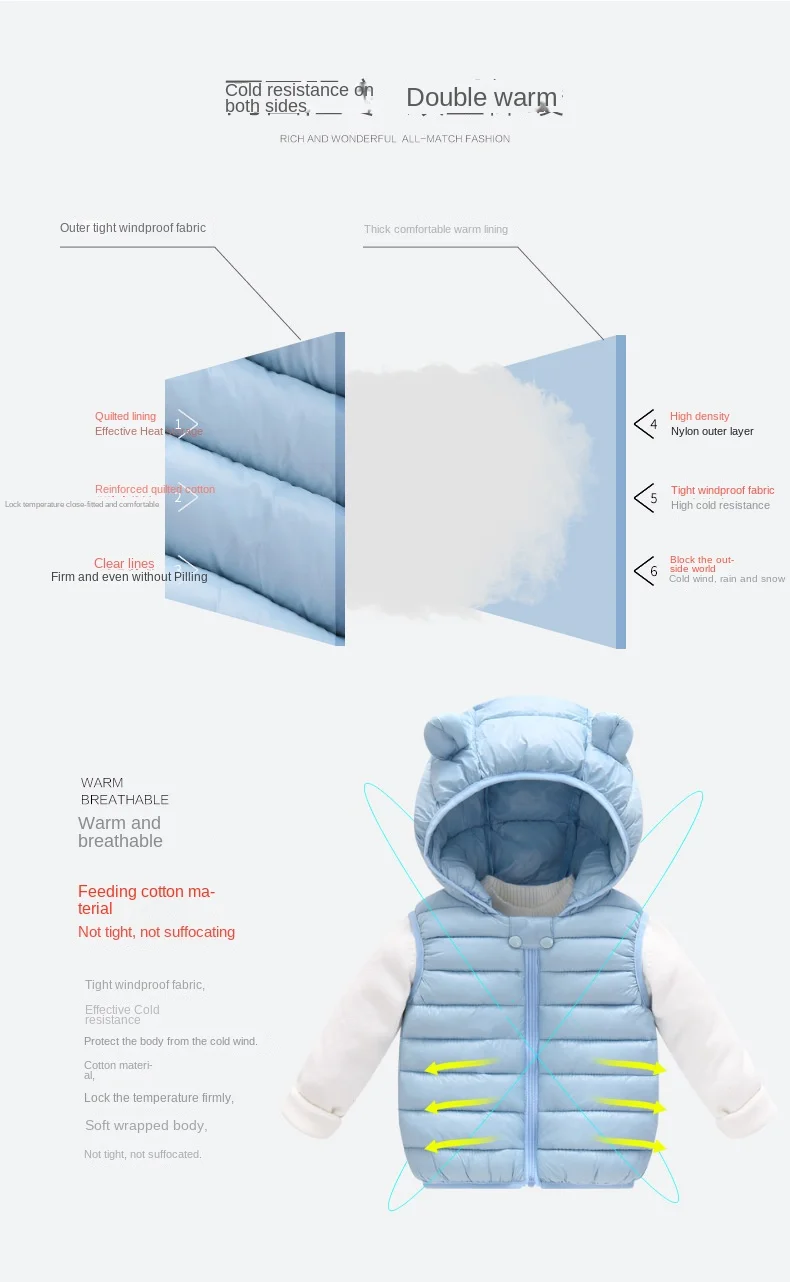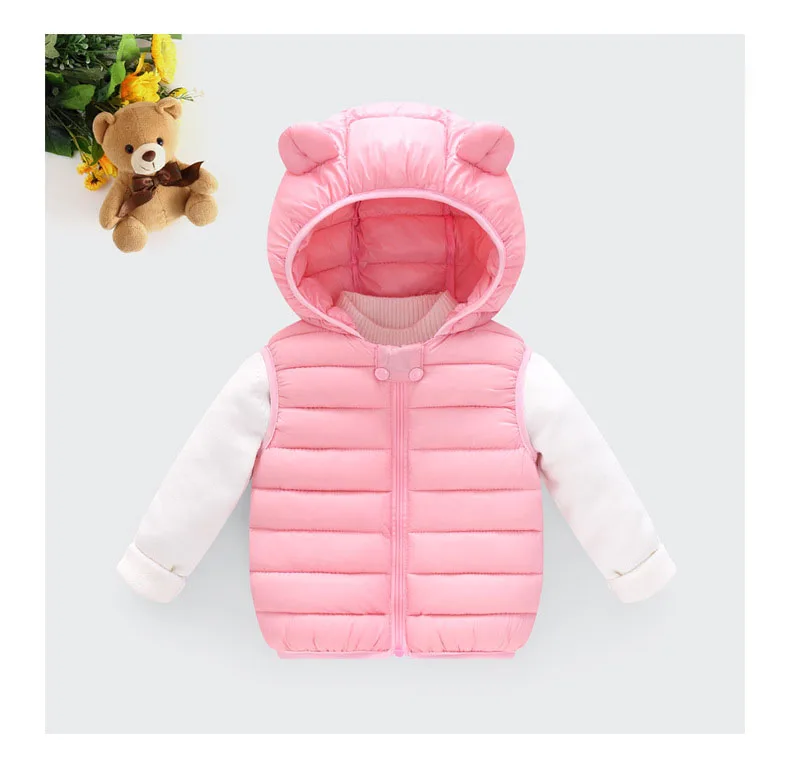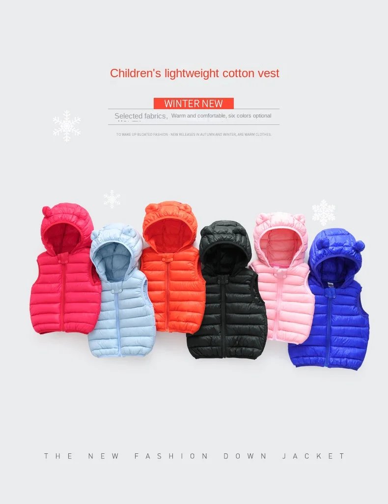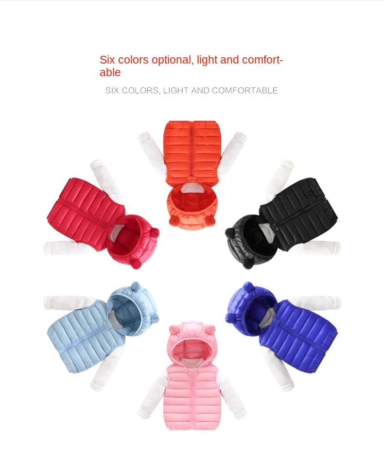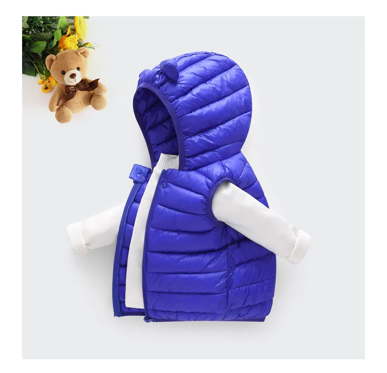 Color: SKY BLUE, Kid Size: 4T - Baby Boys Girl Warm Down Vest Toddler Cotton Waistcoat Children Autumn and Winter Clothes Kids Hooded Jackets 1-6 Years Old